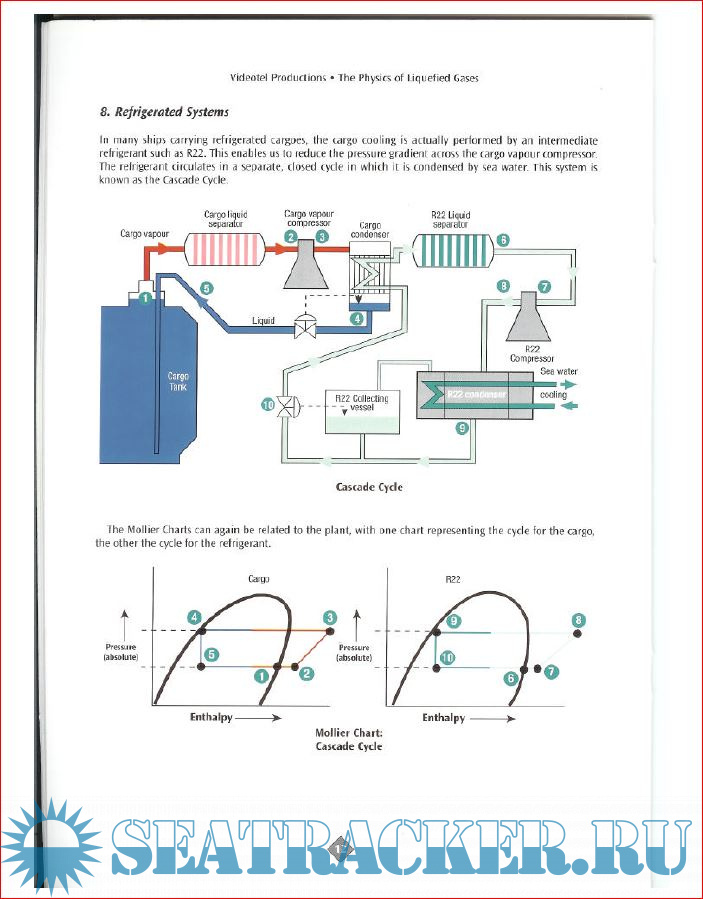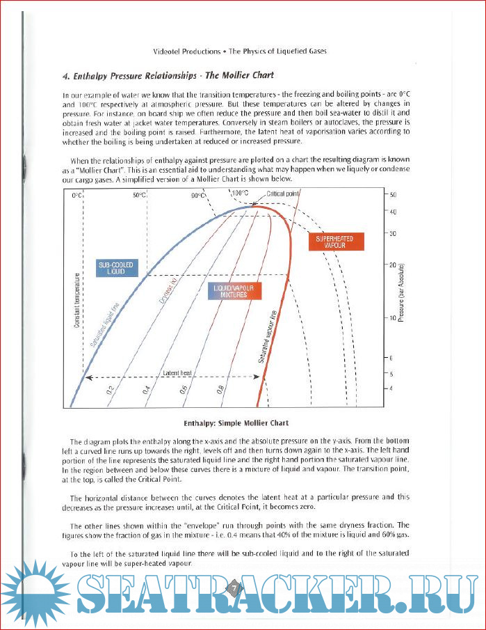 Then the three phases of matter are discussed - solid, liquid and gas and the transitions between them which involve Latent Heat. This leads to consideration of Enthalpy and the effect of Pressure on boiling points. The use of Mollier Charts is explained. The laws of thermodynamics are also considered and the applications of these and the other laws to practical cargo systems is considered. The operation of single and two-stage compression systems and of refrigerated systems all depend on the principles we have defined.
