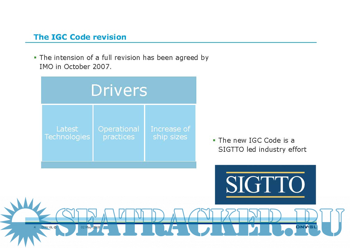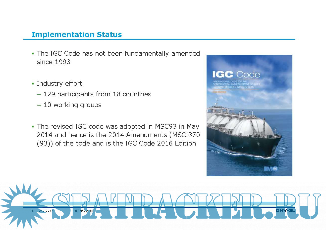 Year: 2018 Language: english Author: DNV GL Genre: Presentation Format: PDF Quality: eBook Pages count: 20 Description: This presentation refers to the IGC update project after the release of the new IGC Code, 2016 Edition. It also includes the IMO work on Corrections to the revised IGC Code.