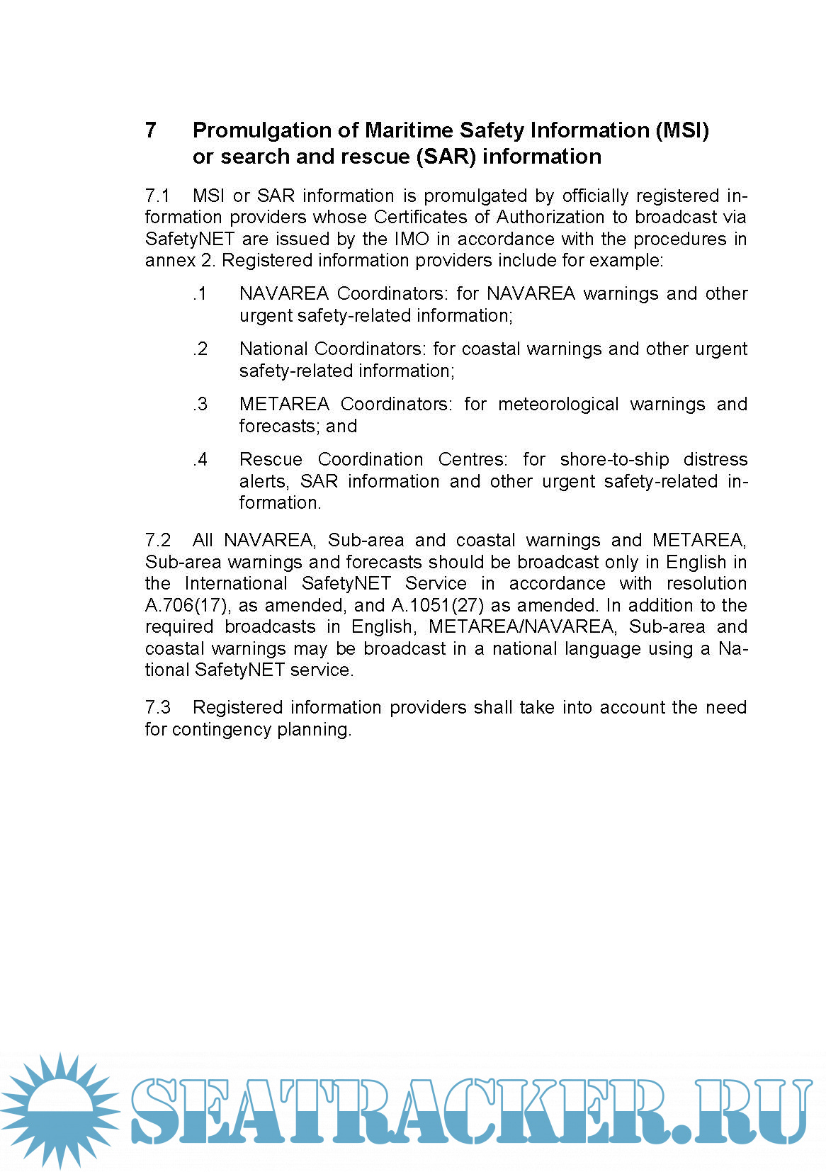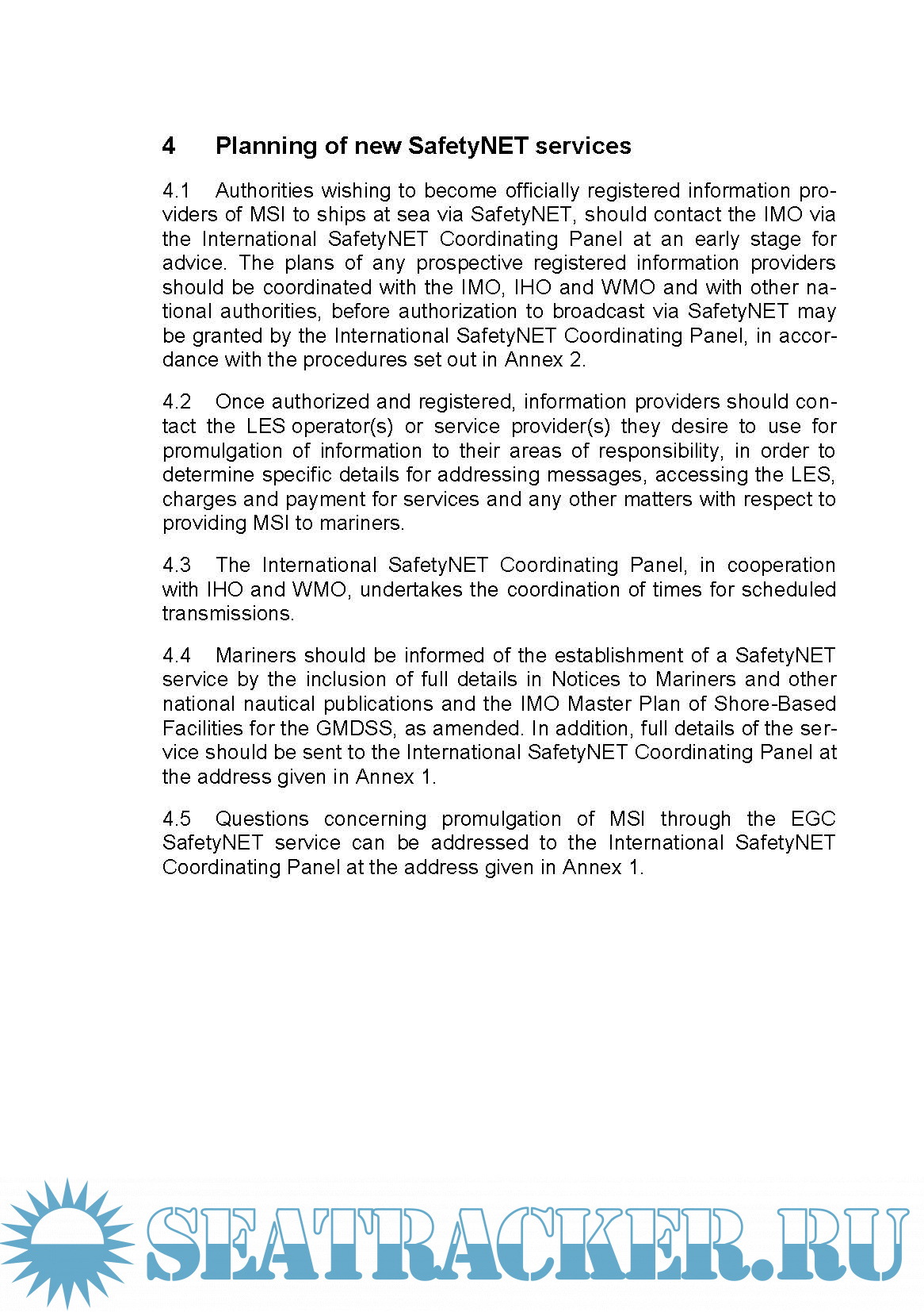 INTERNATIONAL SafetyNET MANUAL