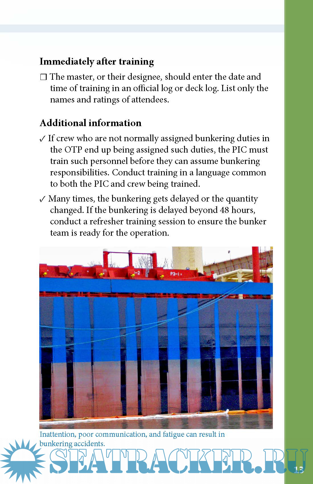 The practices highlighted in this manual are meant to create a spill prevention mindset during your bunkering operations. They do not replace your vessel’s procedures or the federal oil transfer requirements of the U.S. Coast Guard.