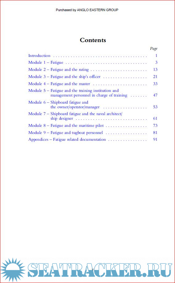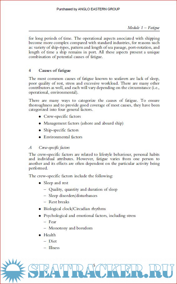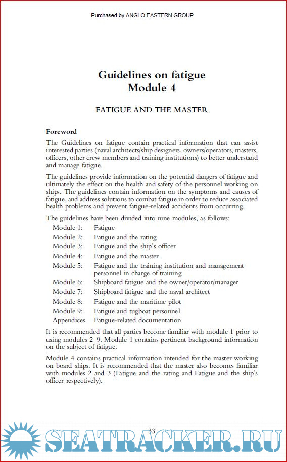 Description: This publication provides guidance on better understanding and managing the issue of fatigue. This guidance outlines the potential dangers associated with fatigue and the effect on the health and safety of the personnel working on ships. These guidelines contain information on the symptoms and causes of fatigue, and addresses solutions to combat fatigue to improve the associated health problems and help prevent a fatigue-related accident from occurring.