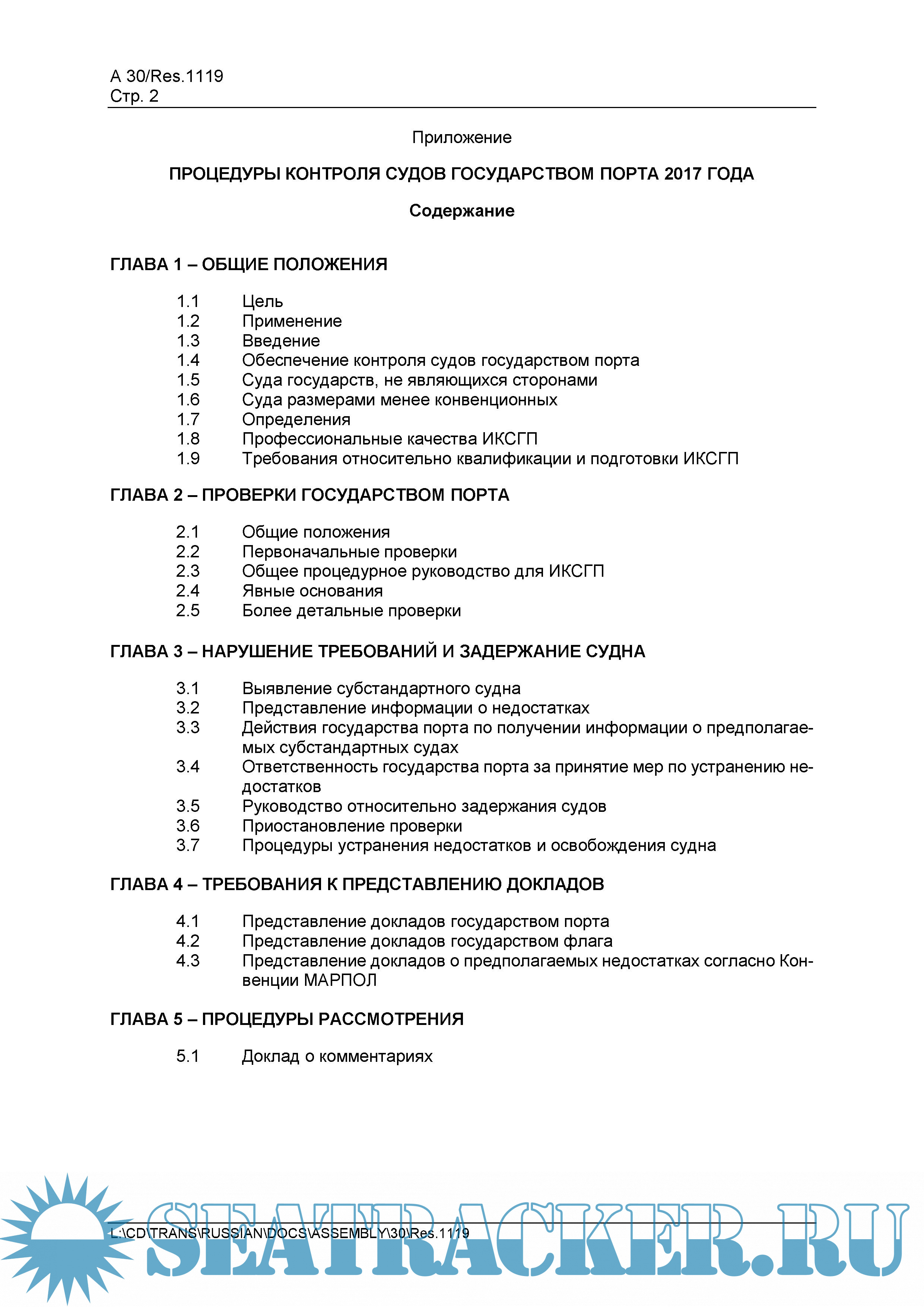Описание: Данный документ предназначен предоставить основы руководства по проведению контроля судов государством порта и обеспечению единообразия в проведении этих проверок, по выявлению несоответствий судна, его оборудования или его экипажа и в применении процедур контроля.