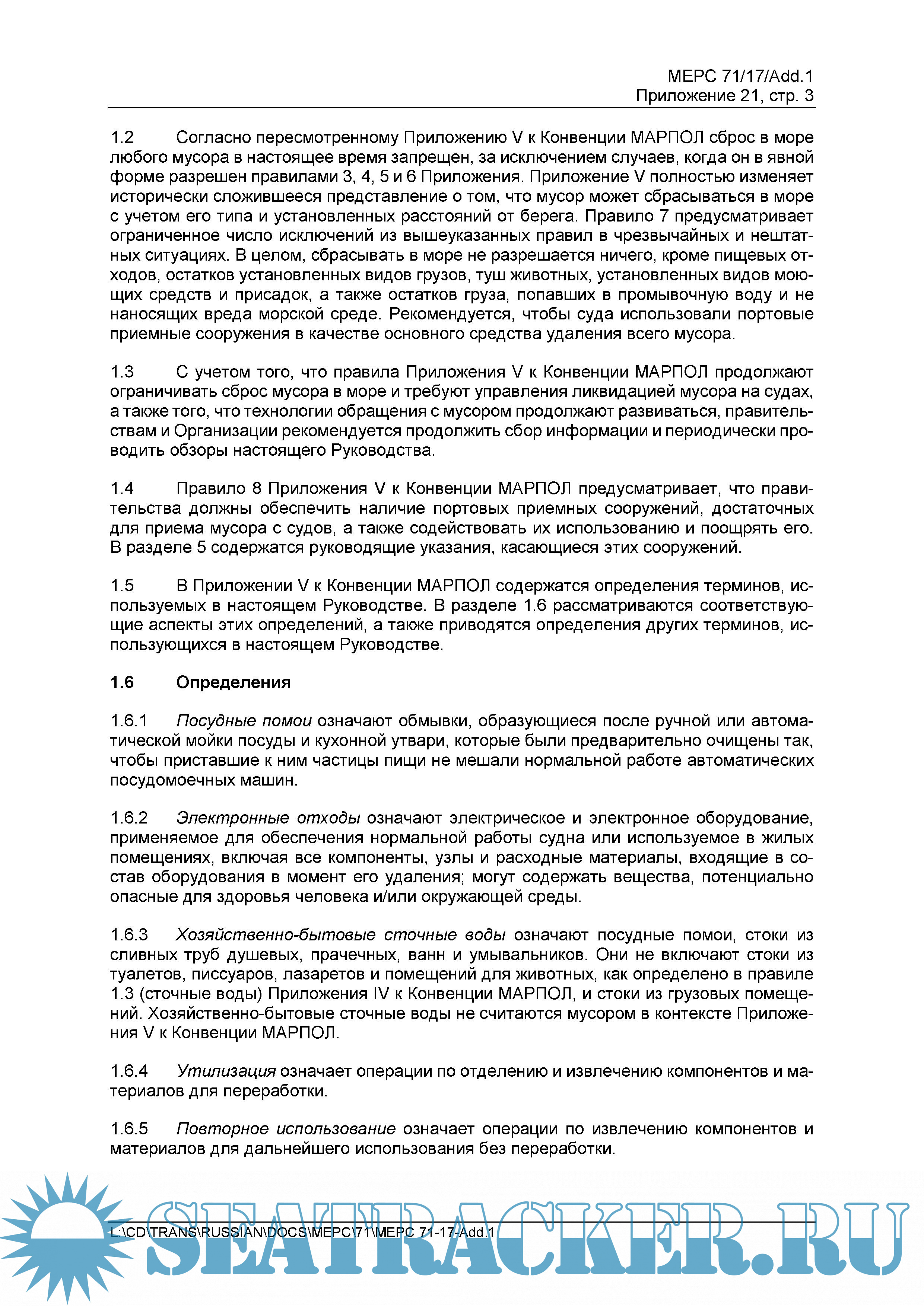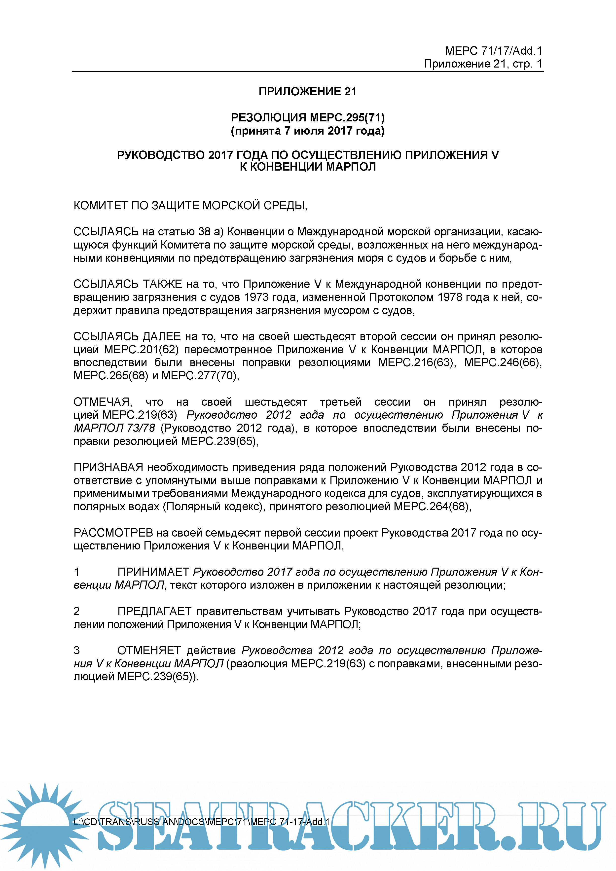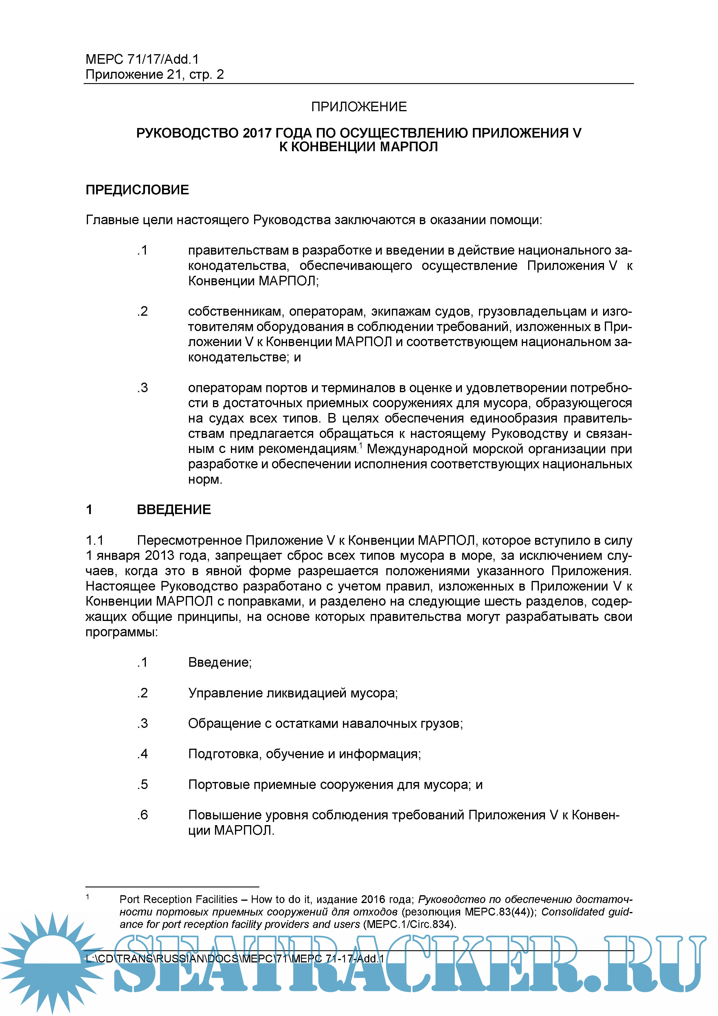 РУКОВОДСТВО 2017 ГОДА ПО ОСУЩЕСТВЛЕНИЮ ПРИЛОЖЕНИЯ V К КОНВЕНЦИИ МАРПОЛ