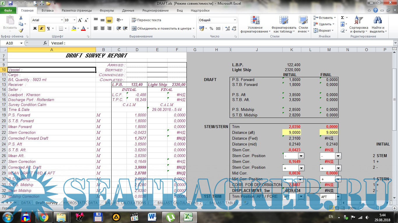 Описание: Программа расчет колличества груза в EXCEL формате.