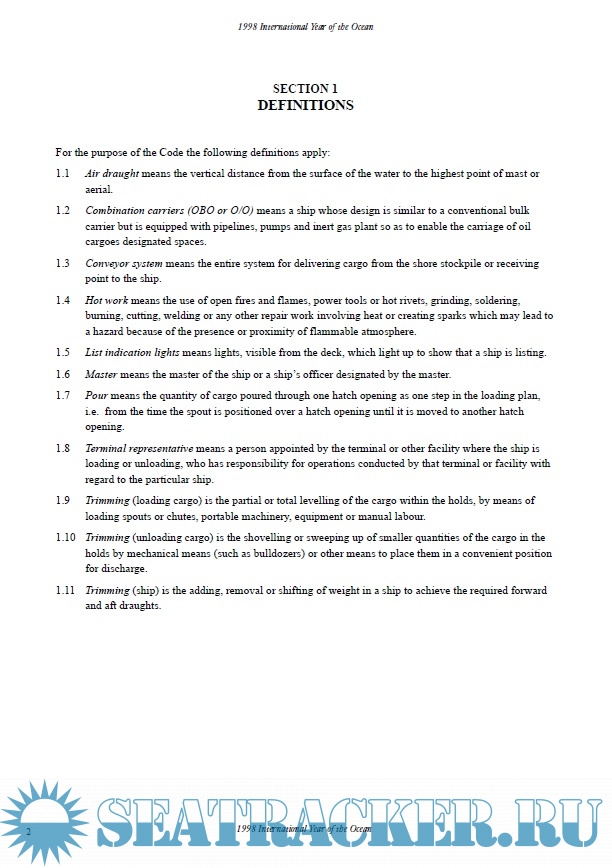 See Amsa's Marine Order 34 (Solid bulk cargoes) 2016. (in force under subsection 342(1) of the Navigation Act 2012). Updated on 13 October 2017 taking into account amendments up to Marine Orders (Navigation Act) Administrative Amendment Order 2017. Documentation used by AMSA is allready posted in full on the Tracker. This posted publication is outdated and will only cause confuse of regulations.