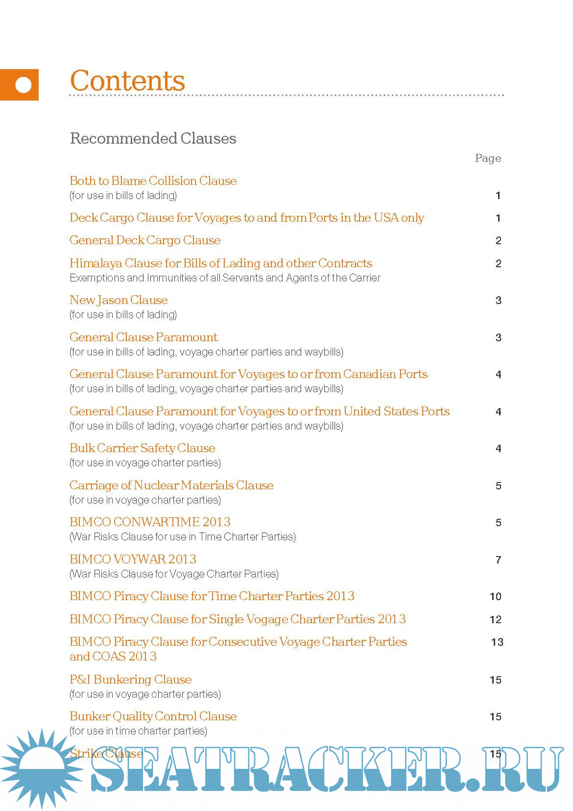Description: The North of England P&I RECOMMENDED CLAUSES 2018-19, Version 2
