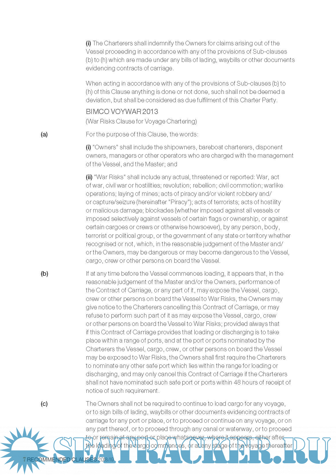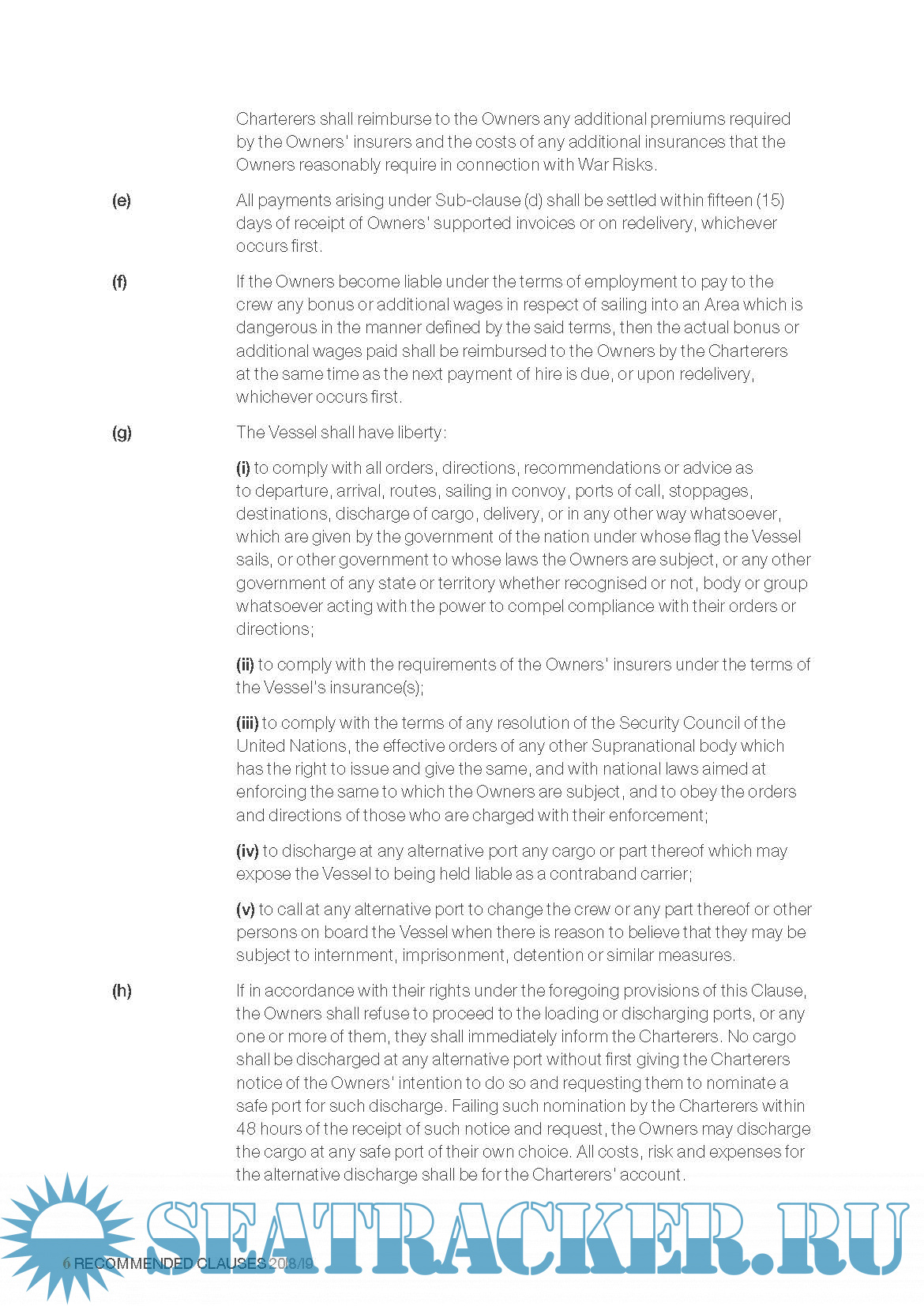 The North of England P&I RECOMMENDED CLAUSES 2018-19, Version 2