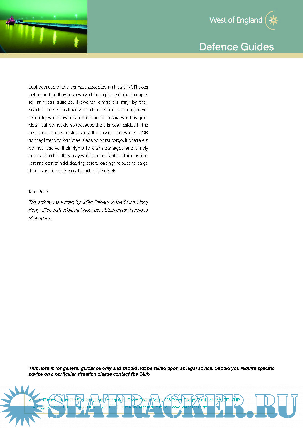 These guides provide Members with information and advice on some P&I claims topics: