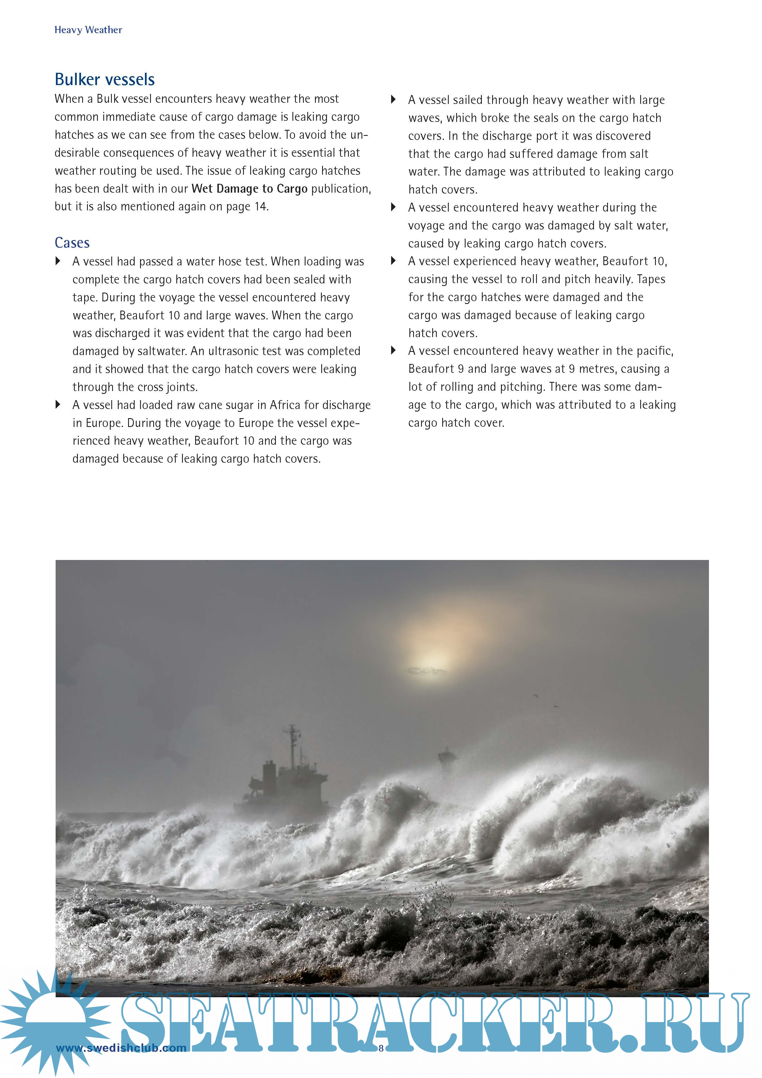 Year: 2014 Language: english Author: Swedish P&I Club Genre: Guide Format: PDF Quality: eBook Pages count: 22 Description: Heavy weather does not only cause typical P&I claims such as damage to cargo or loss of cargo overboard. Heavy weather also causes H&M claims, which can include structural damage to the vessel or, damage to machinery and equipment etc. A large proportion of cases where containers are lost at sea occur in heavy weather.
