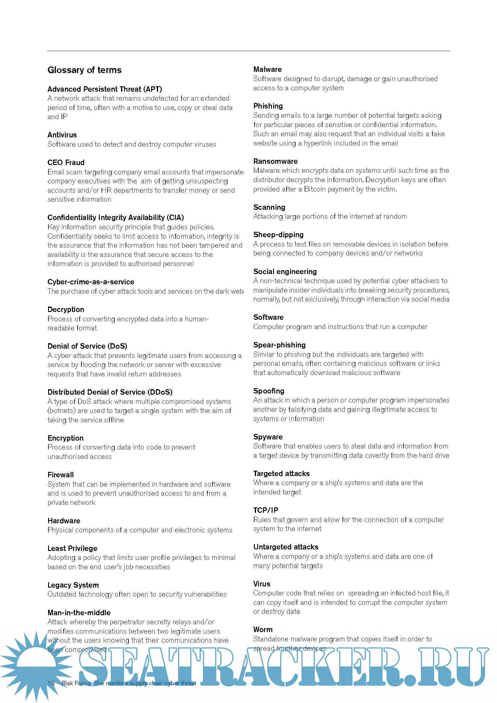 Risk Focus: Cyber, Considering threats in the maritime supply chain 2018 20 PagesQ&A Cyber risks and P&I insurance 2018 4 pages