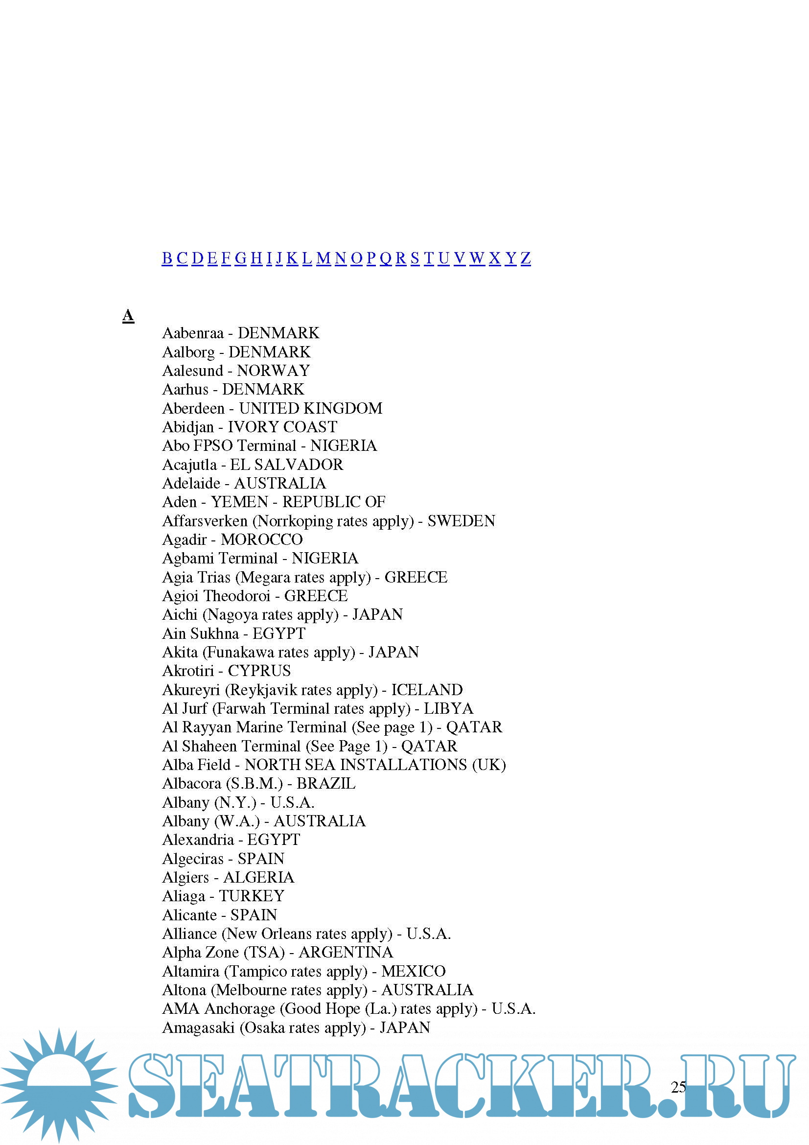 This release includes the one-fifth of the whole book. The rest four-fifths of the book that are not included in this release, present, in an alphabetic order, the flat-worldscale rate from any port of the world to all usual port destinations. Now, if for any reason, you, as a subscriber to the issuing organization, are interested in the flat wordscale rate over a route which is not included in the book, the issuing organization can quote it for you, but only if you are a subscriber of theirs.