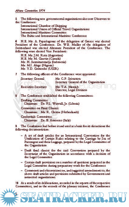 Athens Convention relating to the Carriage of Passengers and their Luggage by Sea, 1974;