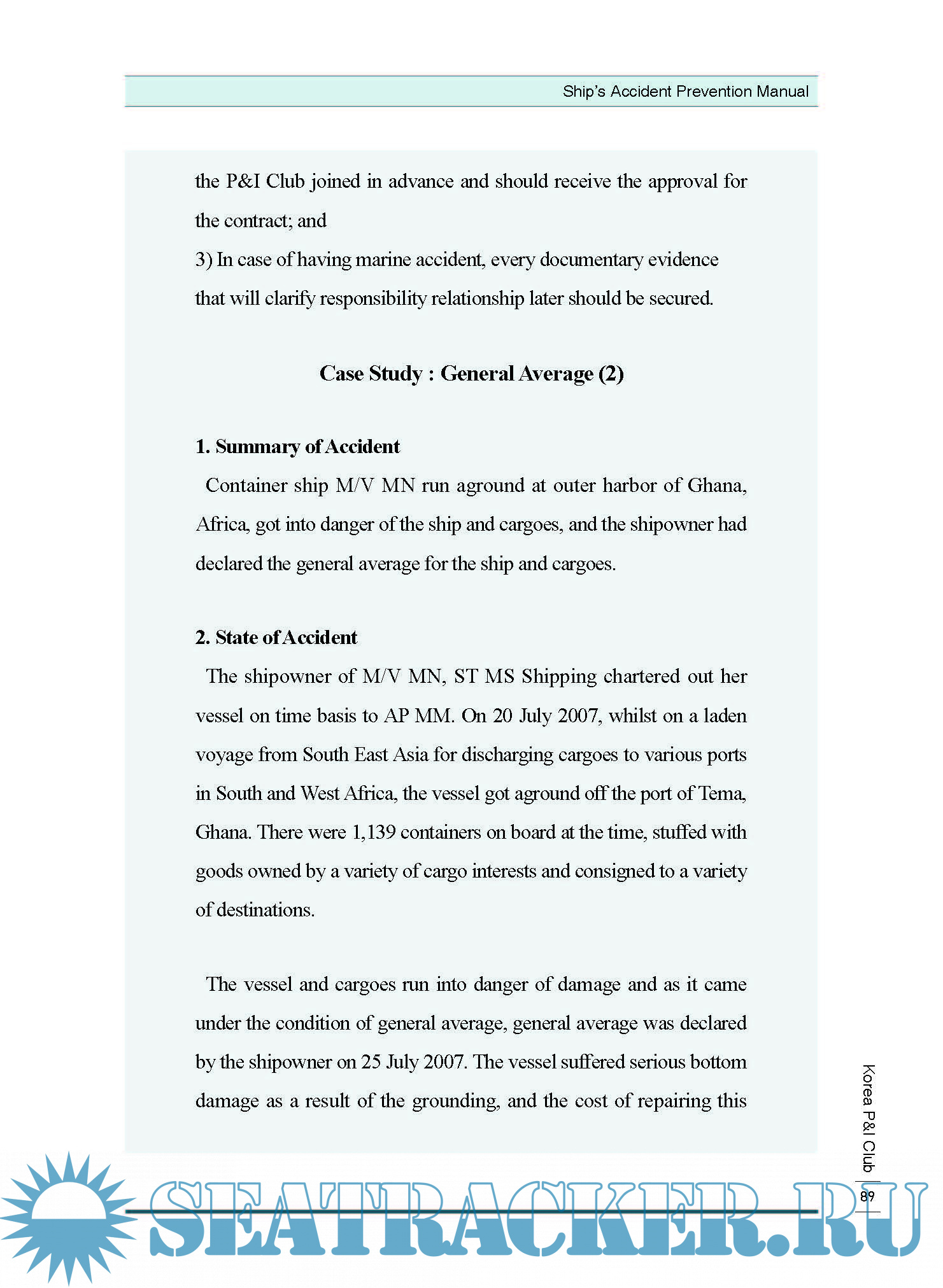 the shipowner or manager of the vessel. It additionally contains a 19 Pages Lessons Learned