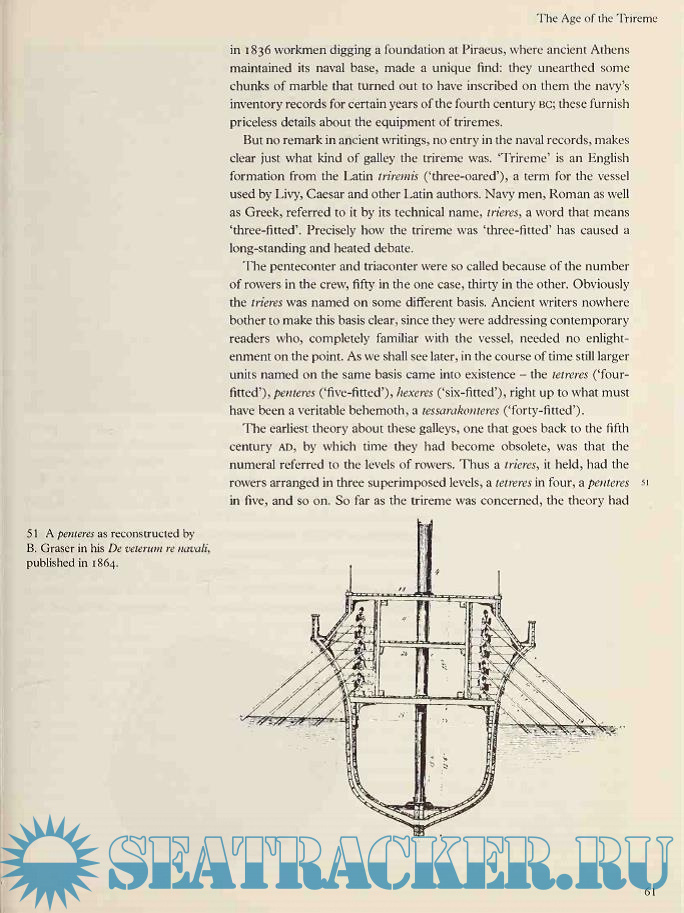 Year: 1994 Language: english Author: Lionel Casson Genre: History Publisher: University of Texas Press Edition: First ISBN: 029271162X Format: PDF Quality: Scanned pages Pages count: 172 Description: Ships and boats have always played a paramount role in the history of the Western world. The invention of the sail about 3500 BC resulted in ever faster and more efficient water transport, and the great civilizations of Egypt, Greece, and Rome depended on ships and seafarers for their prosperity. This entertaining book by the world's foremost authority on ancient seamanship traces the development of the boat from the most primitive craft to the powerful warships of the Greeks, the huge Roman merchant vessels, and the slender galleys of the Vikings. Professor Casson shows how the discoveries of marine archaeologists and recent experiments with full-size replicas of ancient boats have increased our knowledge of the way in which ships were built and used. Drawing upon written accounts and contemporary artistic depictions of naval battles, trading expeditions, and other voyages, he brings the world of seafaring in ancient times vividly to life. Additional info: A history book.