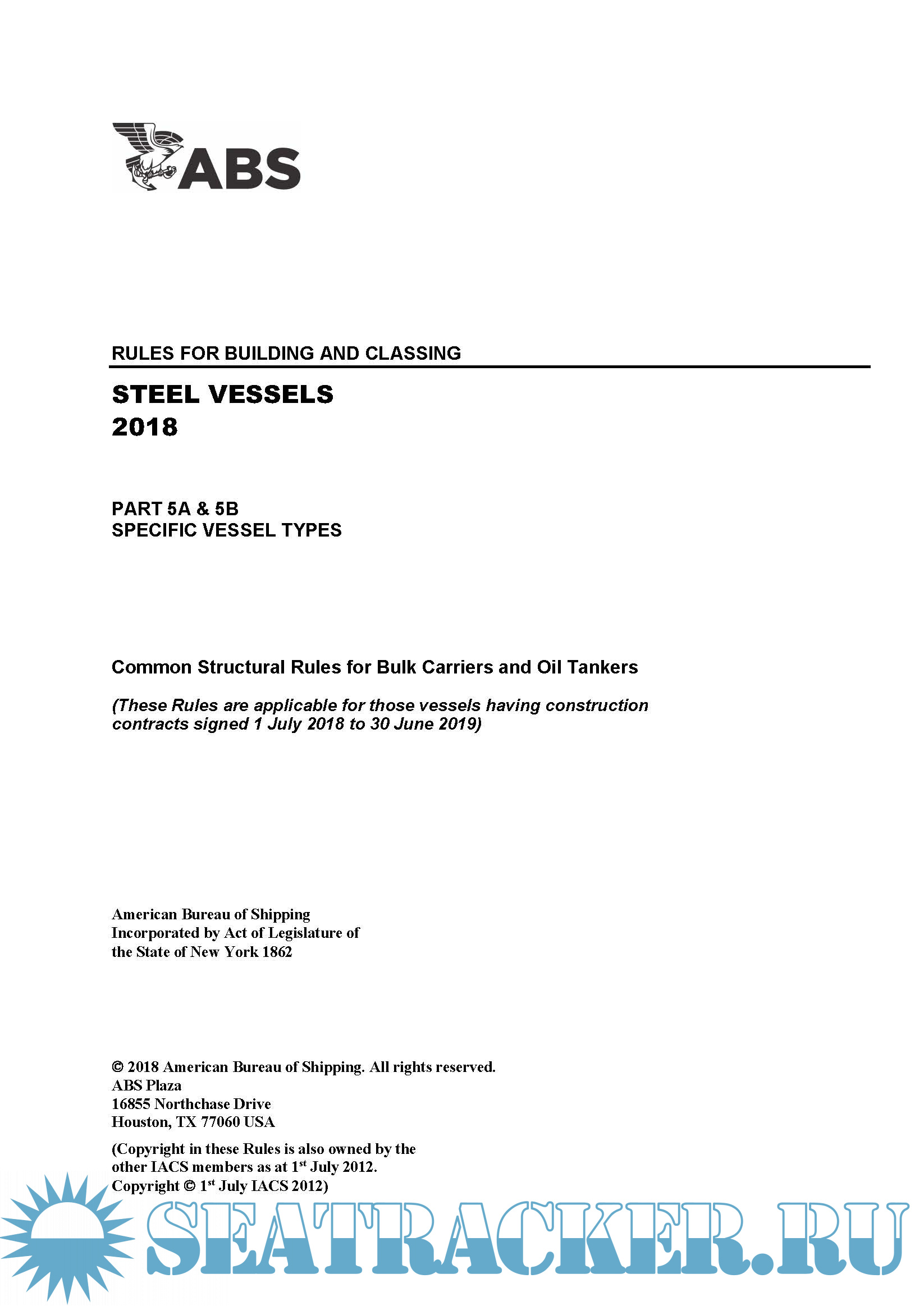 Rules of American Bureau of Shipping (ABS) - ABS [2018, PDF]