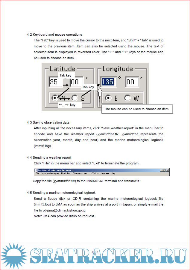 - You can send a weather report from the Inmarsat transmitter by uploading the weather report file (yymmddhh.tlx).