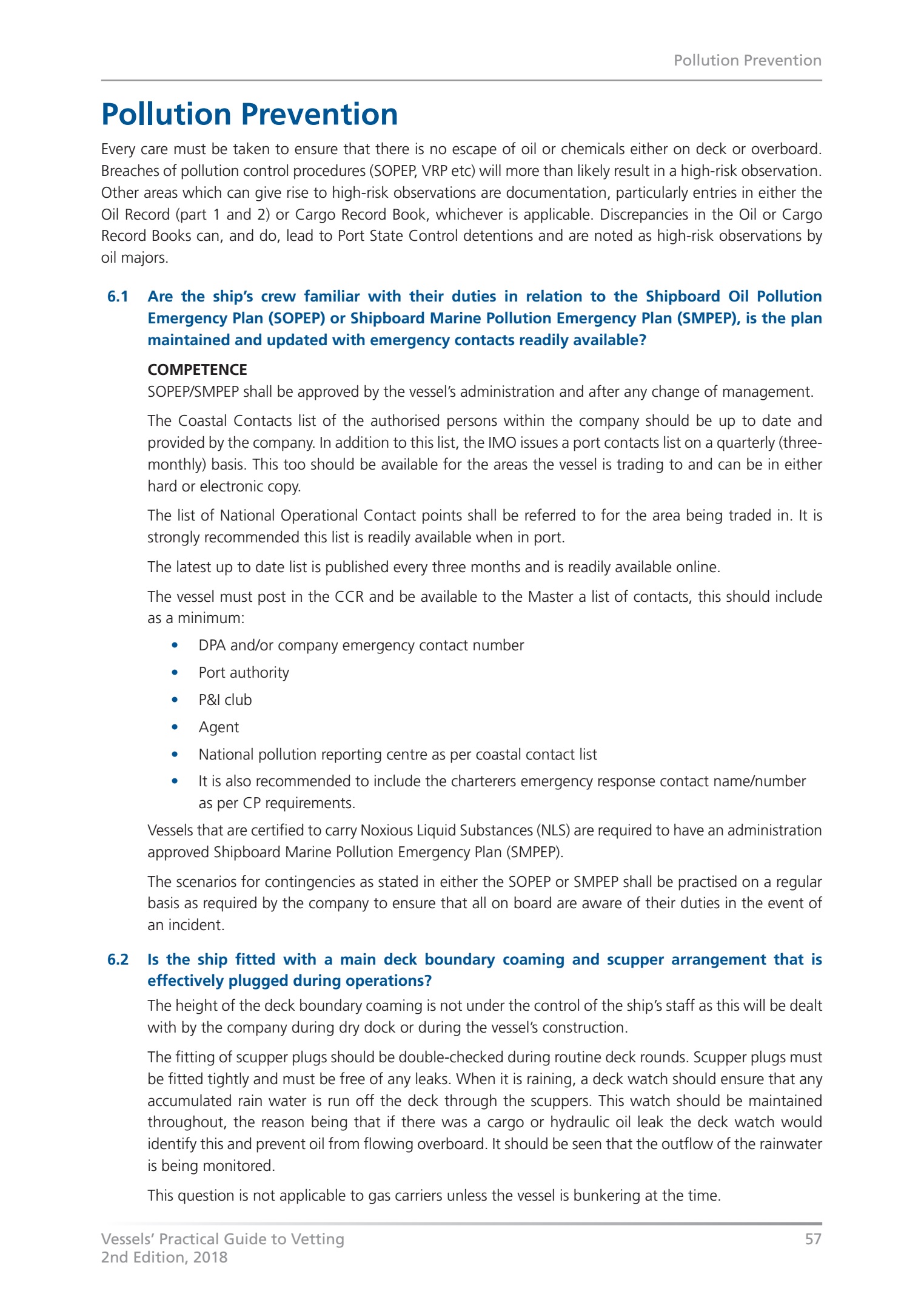 This publication follows each chapter of the latest version of the SIRE Vessel Inspection Questionnaire (VIQ) and provides guidance on the responsibilities for each question in the VIQ. Each ship owner, ship management company/operator or technical manager, referred to from here on in this Guide as “the company” should, under their own Safety Management System (SMS), have their own allocations of such responsibilities on board.