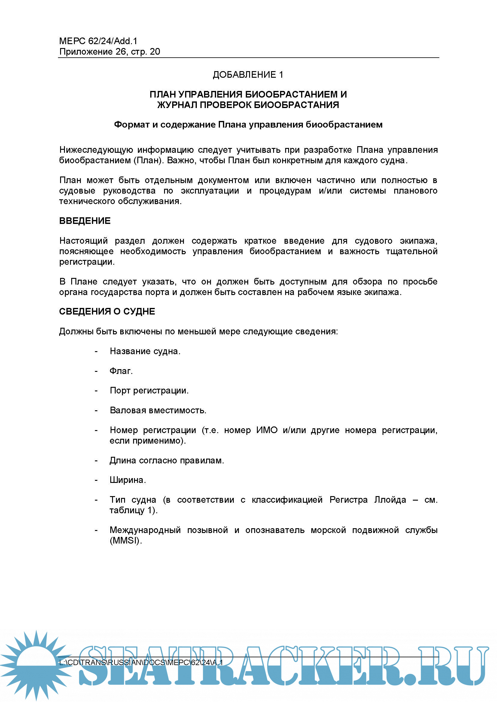 – Формат и содержание Плана управления биообрастанием