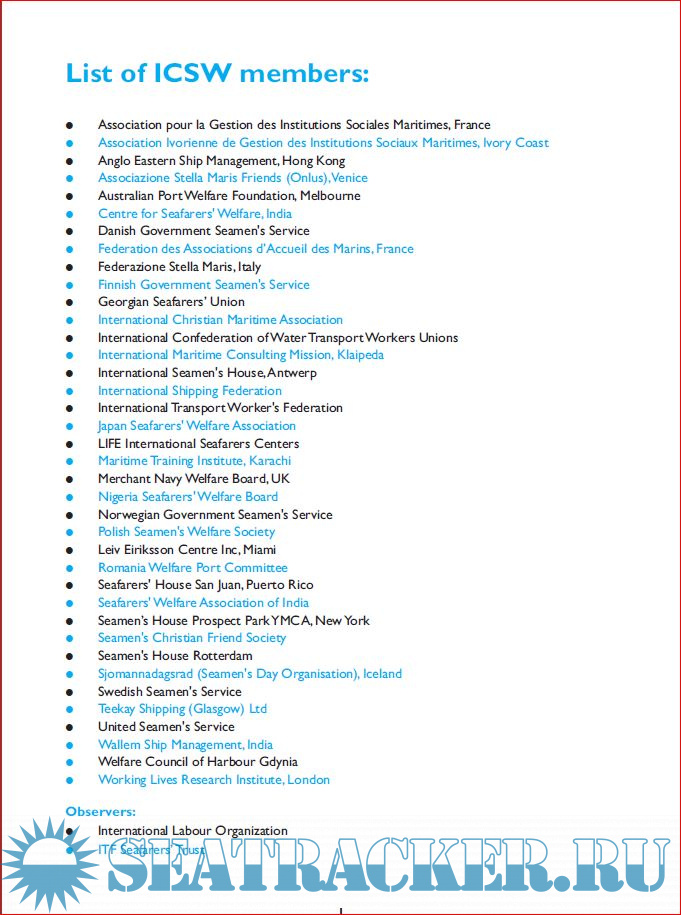 Description: An ICSW directory of welfare centres for seafarers to give information on what is available in different ports. Compiled by the ICSW (International Committee for the Welfare of Seamen).