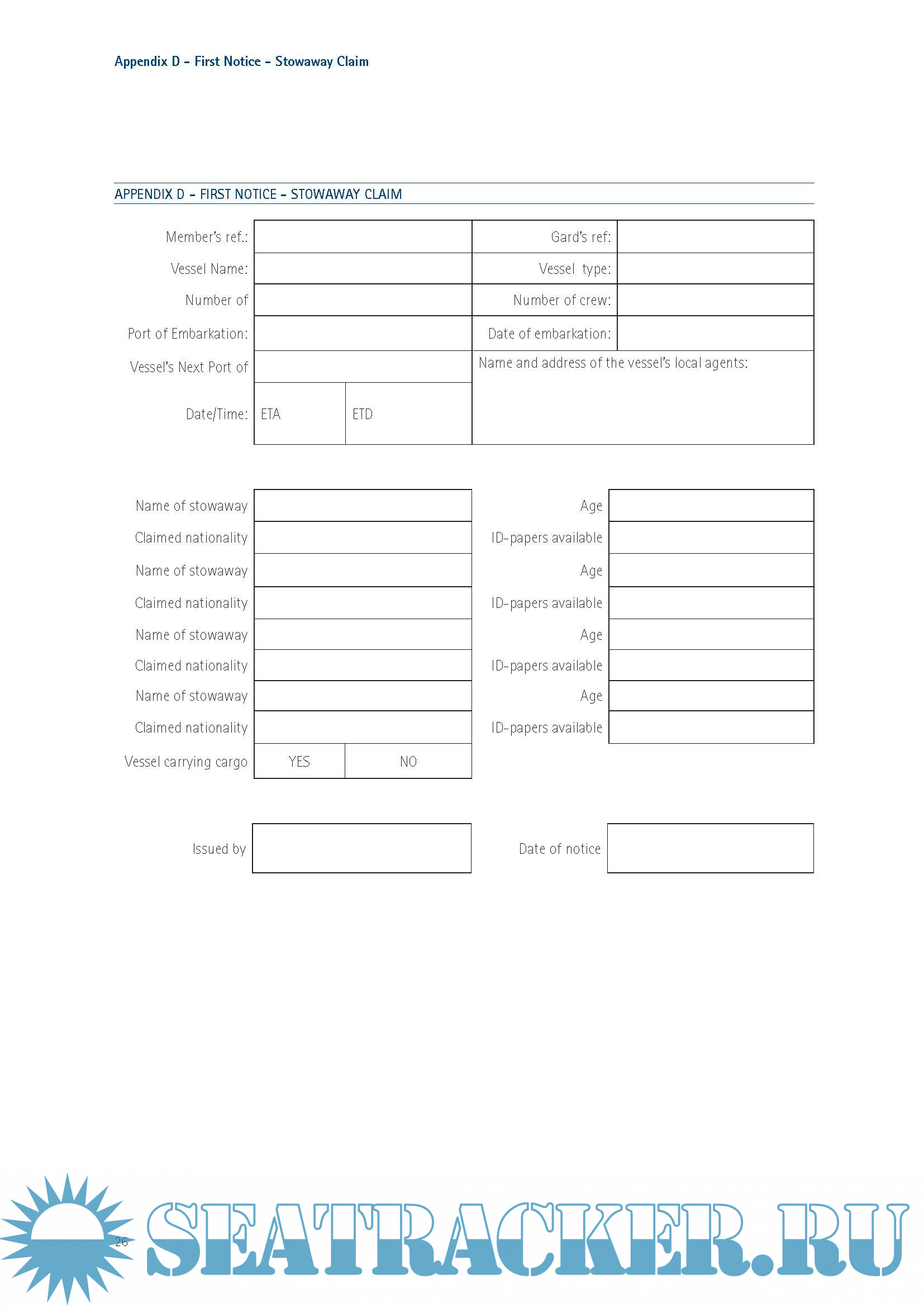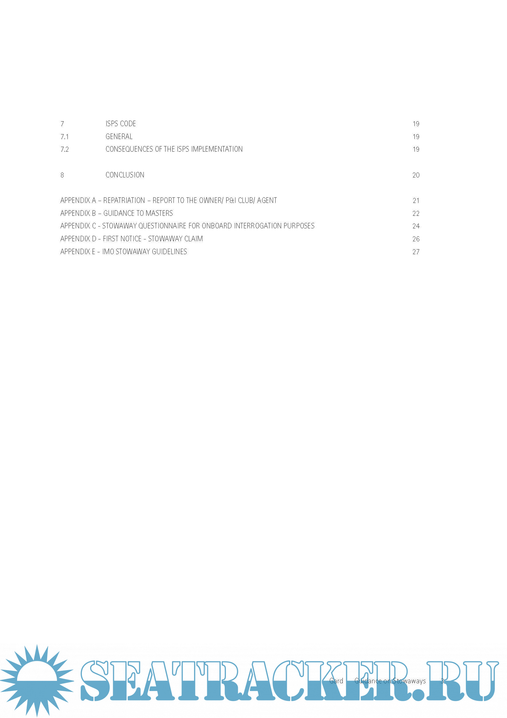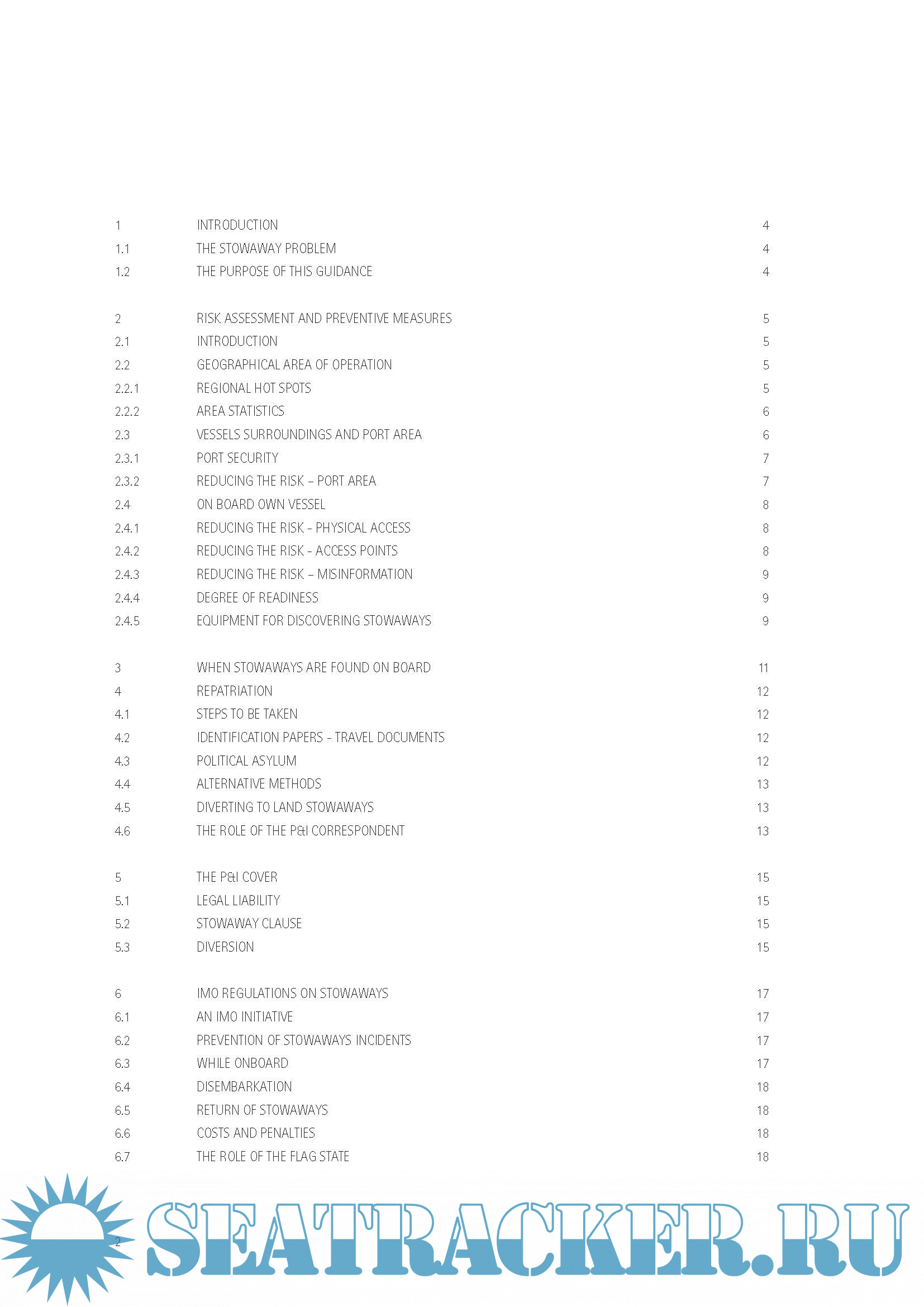 Year: 201x Language: english Author: Gard P&I Genre: Guide Format: PDF Quality: eBook Pages count: 38 Description: The purpose of this Guidance is to act as a practical reference guide and to assist the Master in avoiding pitfalls and problems when it comes to stowaways. It is hoped that readers other than the Master will also find this Guidance useful. This Guidance is not intended as a comprehensive reference work or to replace any company specific guidance.