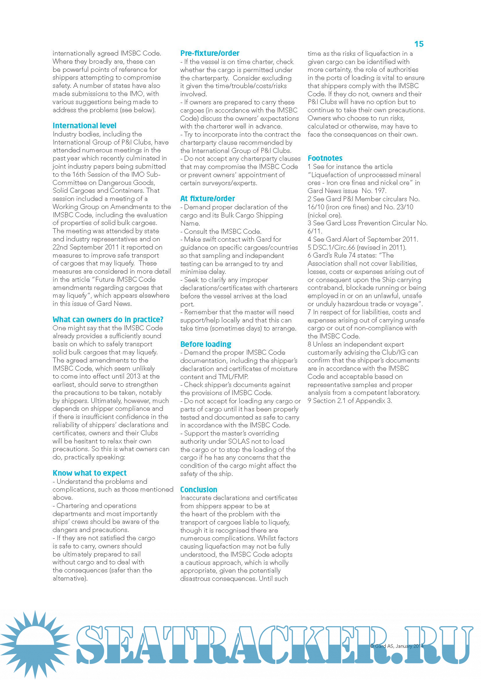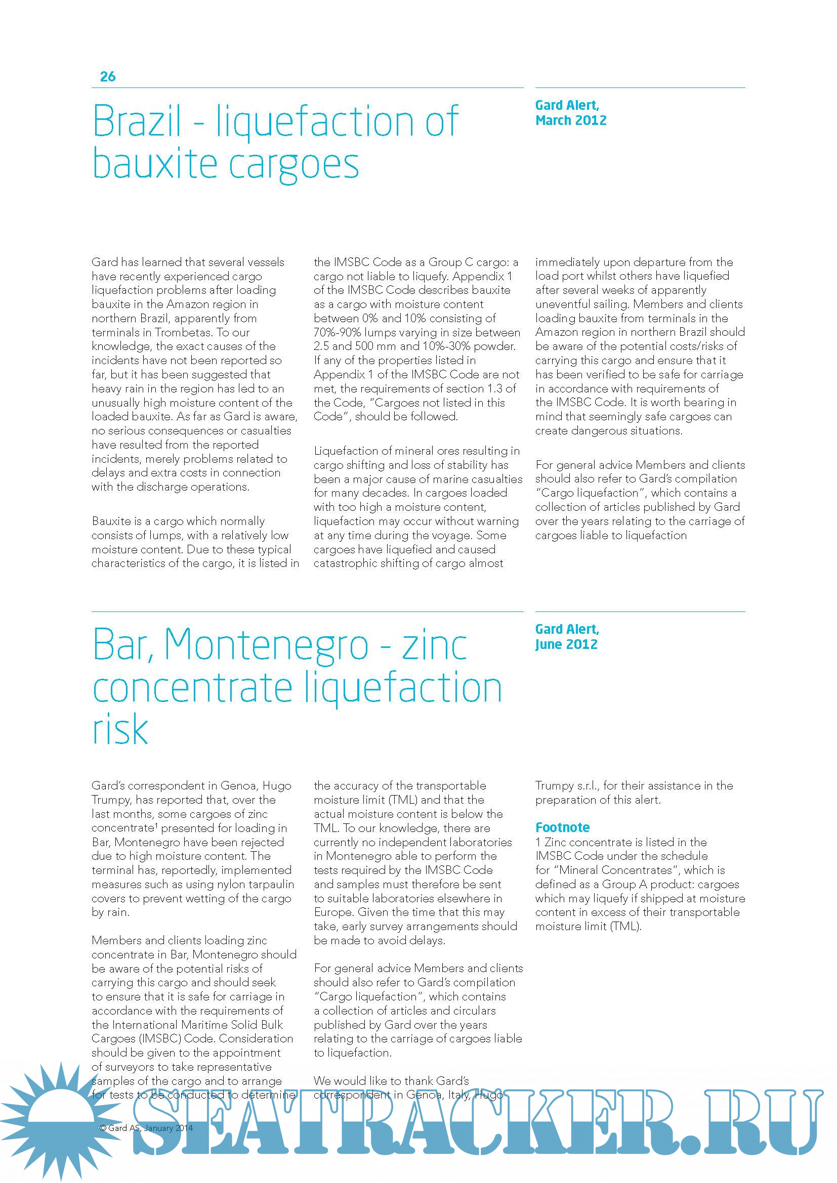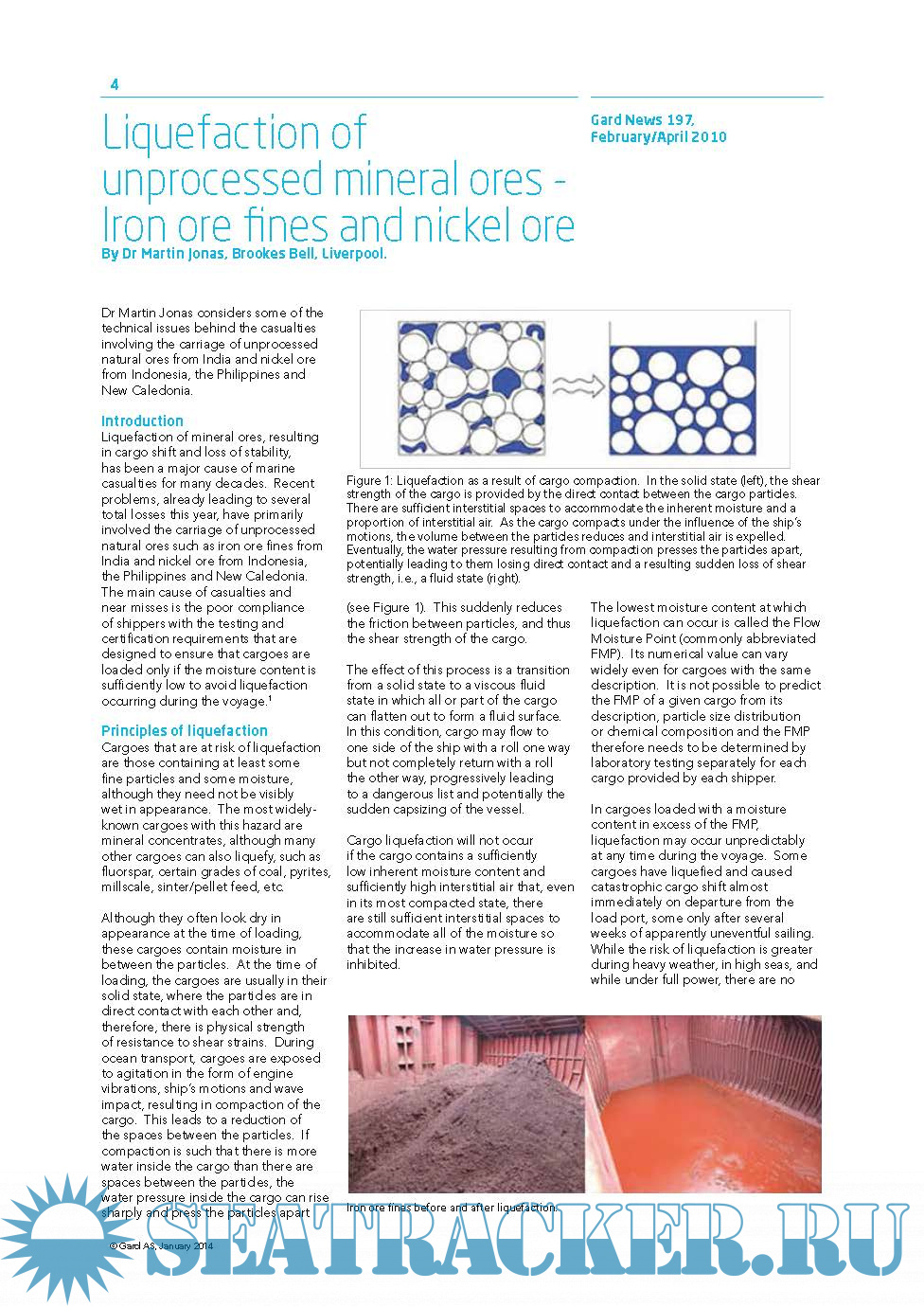 Liquefaction of solid bulk cargoes , A selection of articles previously published by Gard AS