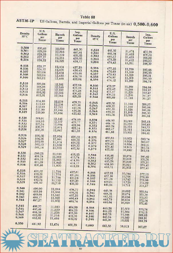 Year: 1986 Language: english Author: Institute of Petroleum Genre: Guide Publisher: John Wiley & Sons ISBN: 0471909610 Format: PDF Quality: Scanned pages Pages count: 100 Description: Tables selected from: ASTM-IP petroleum measurement tables. Metric edition. 1953; with new explanatory matter and computer implementation procedures. Additional info: Density Range 0.500 to 0.653 kg/litre at 15°C