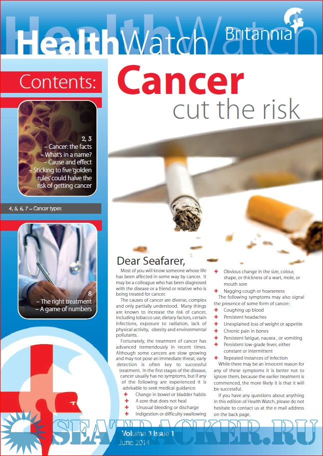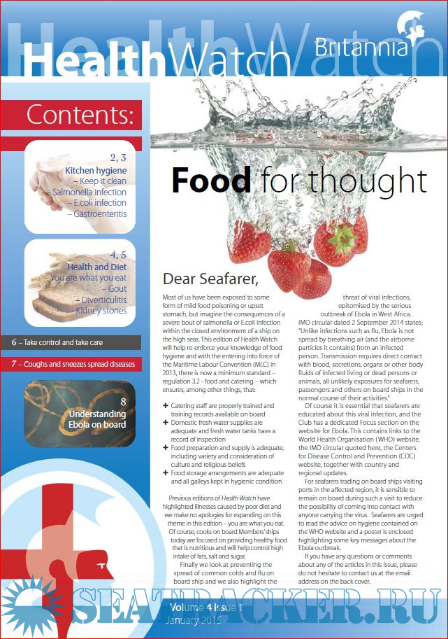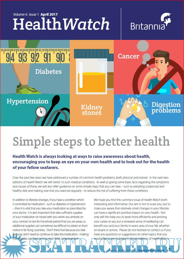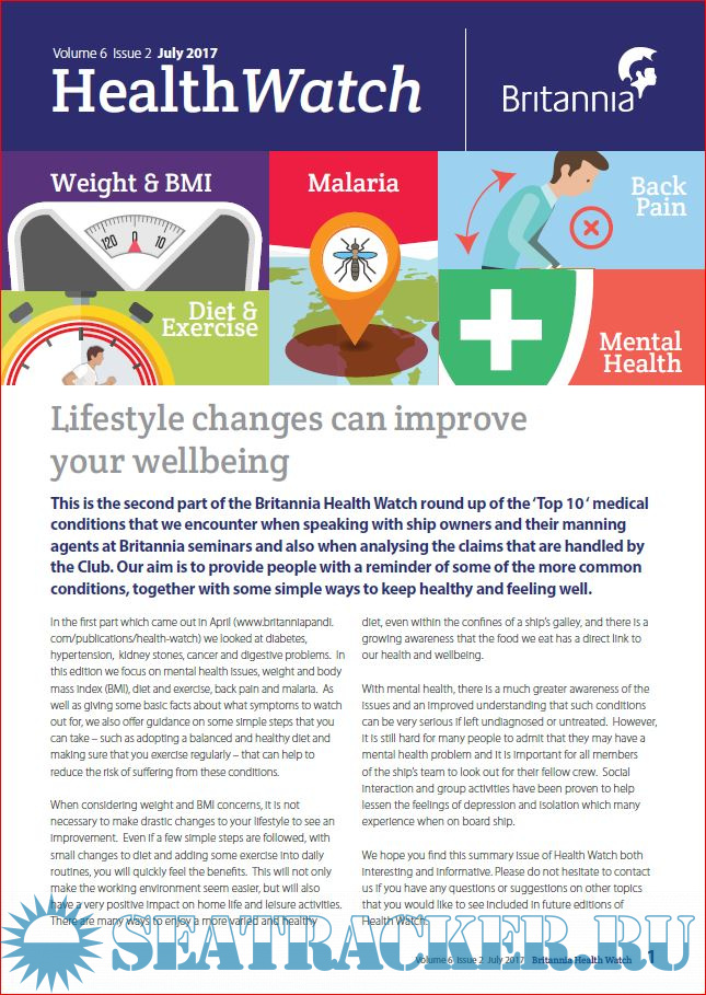 Year: 2018 Language: english Author: Britannia P&I Club Genre: Periodical (magazine) Format: PDF Quality: eBook Pages count: Multiple Description: The quarterly publication of Health Watch (known as Crew Watch from 2018 onwards), is aimed directly at crew with practical advice of topical health and welfare issues.