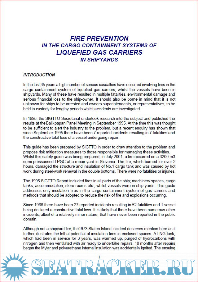 Description: In the last 35 years a high number of serious casualties have occurred involving fires in the cargo containment system of liquefied gas carriers, whilst the vessels have been in shipyards. Many of these have resulted in multiple fatalities, environmental damage and serious financial loss to the ship-owner. It should also be borne in mind that it is not unknown for ships to be arrested and owners superintendents, or representatives, to be