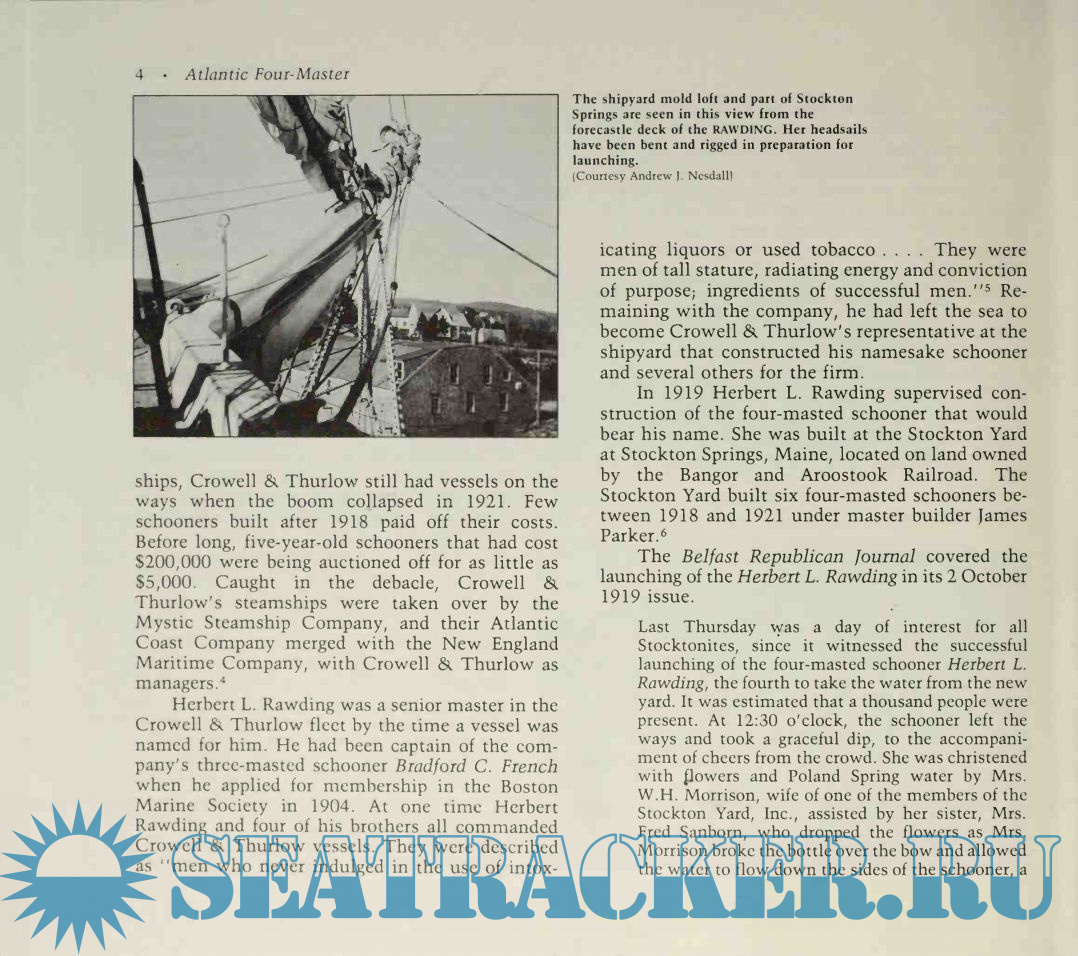 Year: 1986 Language: english Author: F.Bowker Genre: History Publisher: Mystic Seaport Museum ISBN: 0-913372-41-2 Format: PDF Quality: Scanned pages Pages count: 108 Description: When America entered World war II, Captain Francis Bowker was serving as bosun aboard the four-masted schooner Herbert L. Rawding. This product of the World War I shipbuilding boom had been built at Stockton Springs, Maine, in 1919. Moved from trade to trade during the final decline of merchant sail, she was one of very few great schooners still active in 1941. After fruitless service during the war, she began a new career in Newfoundland. Perhaps the last four-master to carry cargo on the Atlantic, she foundered off Spain in 1947.