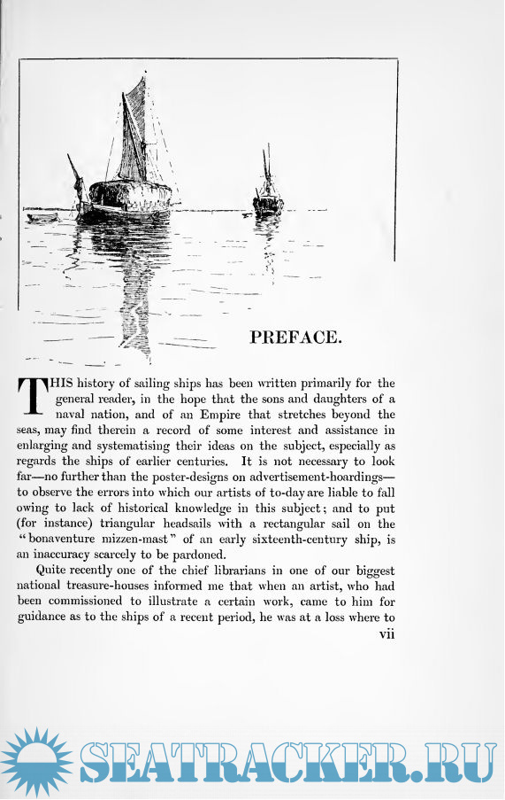Description: This history of sailing ships has been written primarily for the general reader, in the hope that the sons and daughters of a naval nation, and of an Empire that stretches beyond the seas, may find therein a record of some interest and assistance in enlarging and systematising their ideas on the subject, especially as regards the ships of earlier centuries. It is not necessary to look far — no further than the poster-designs on advertisement-hoardings — to observe the errors into which our artists of to-day are liable to fall owing to lack of historical knowledge in this subject; and to put (for instance) triangular headsails with a rectangular sail on the "bonaventure mizzen-mast " of an early sixteenth-century ship, is an inaccuracy scarcely to be pardoned.