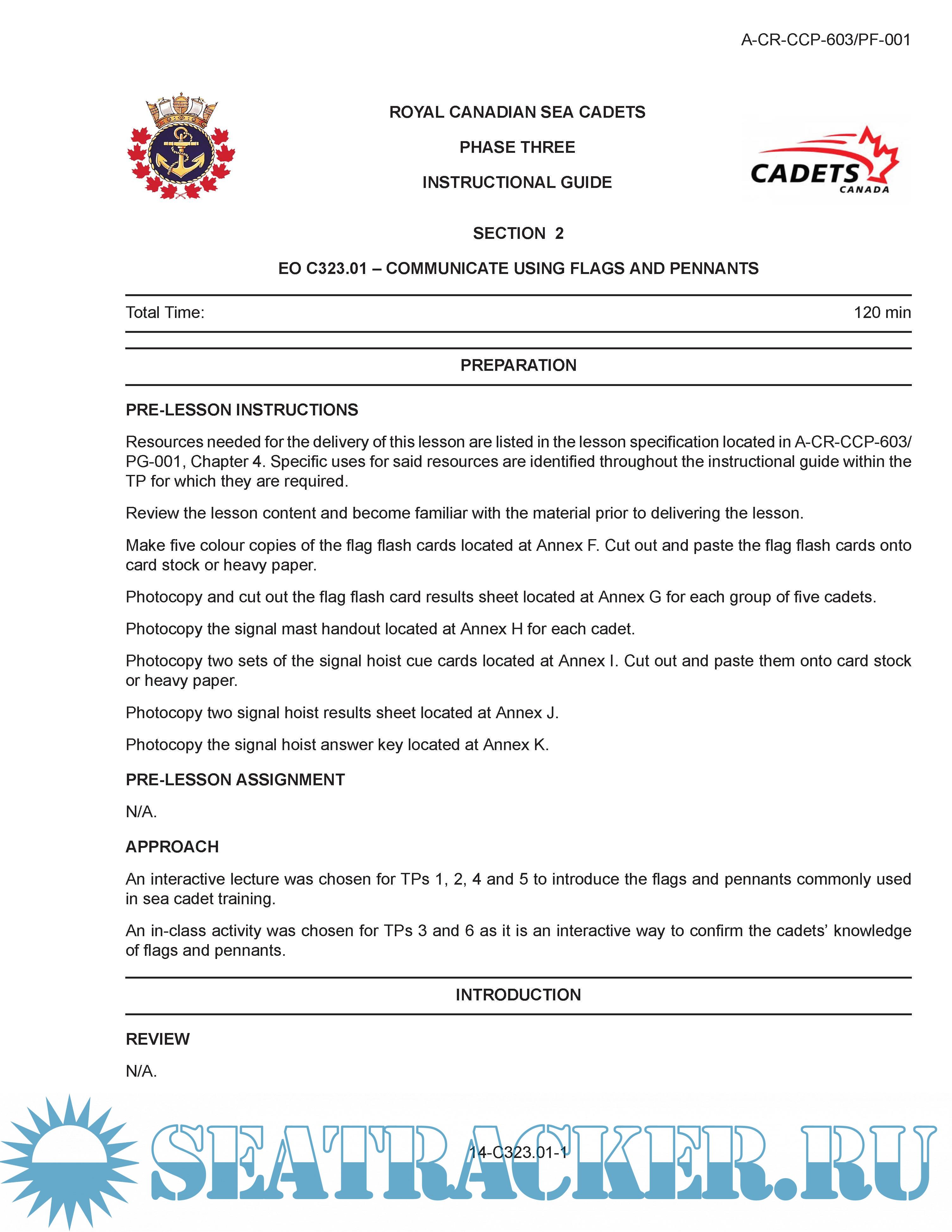 Description: The IG to be used by Royal Canadian Sea Cadet Corps in conjunction with other