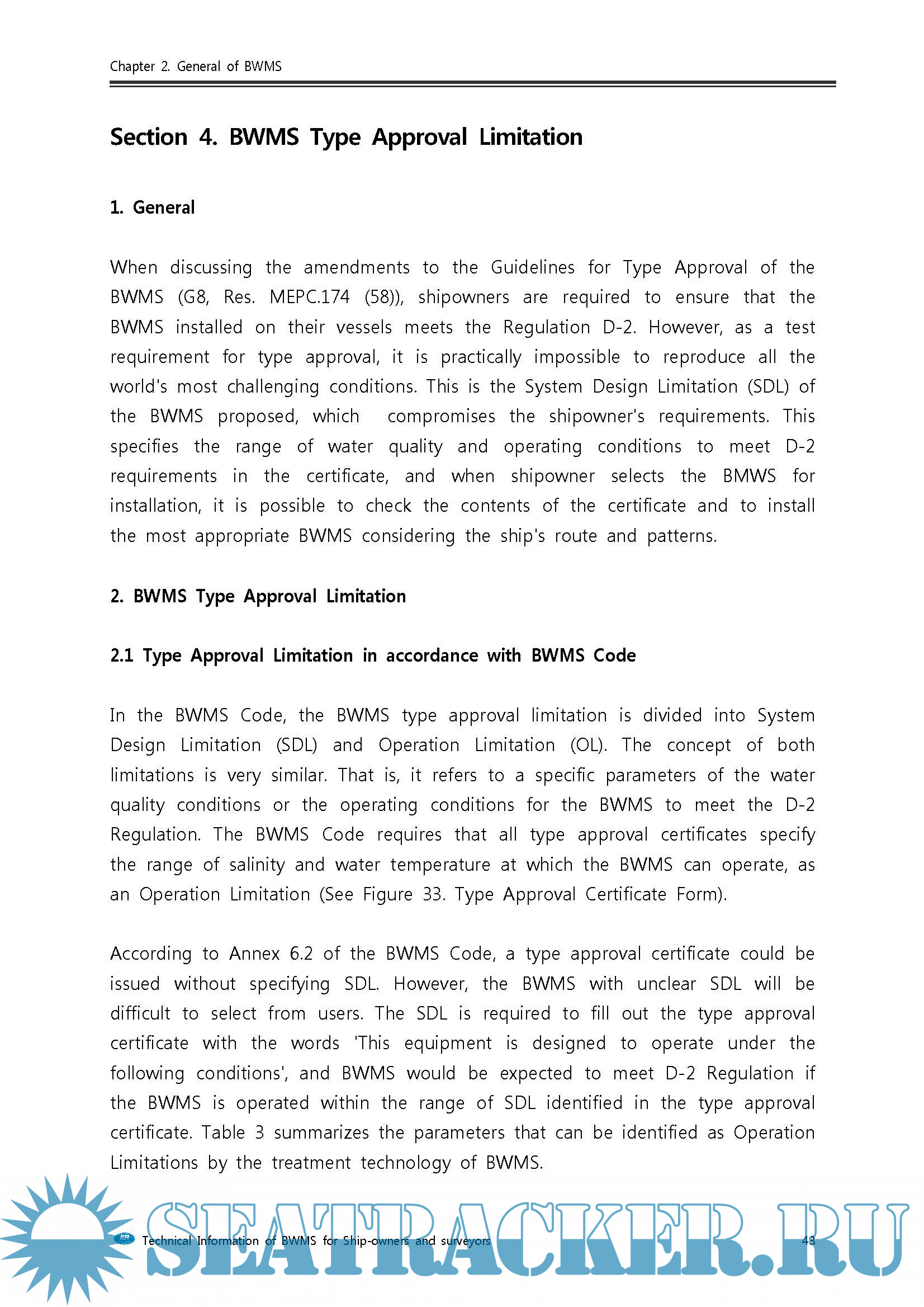 BWMS Technical Information for ship-owners and surveyors