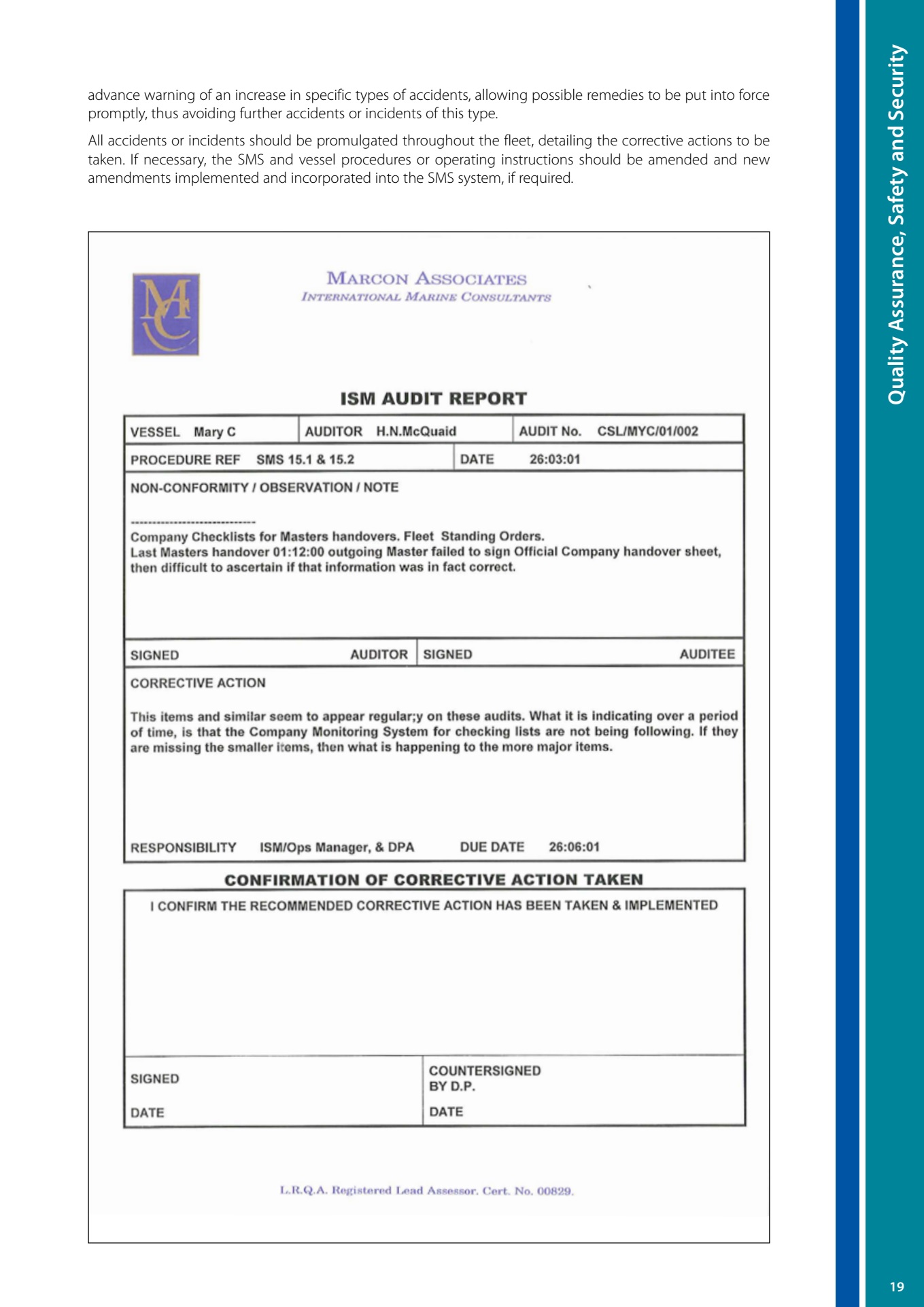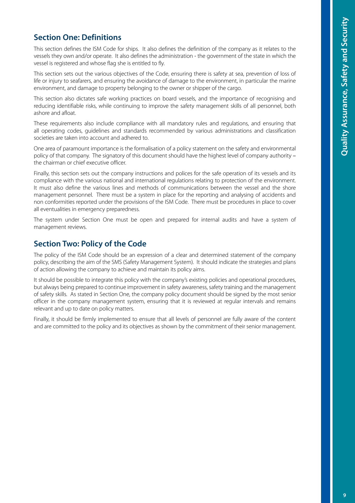 • International Safety Management (ISM) and other quality control measures