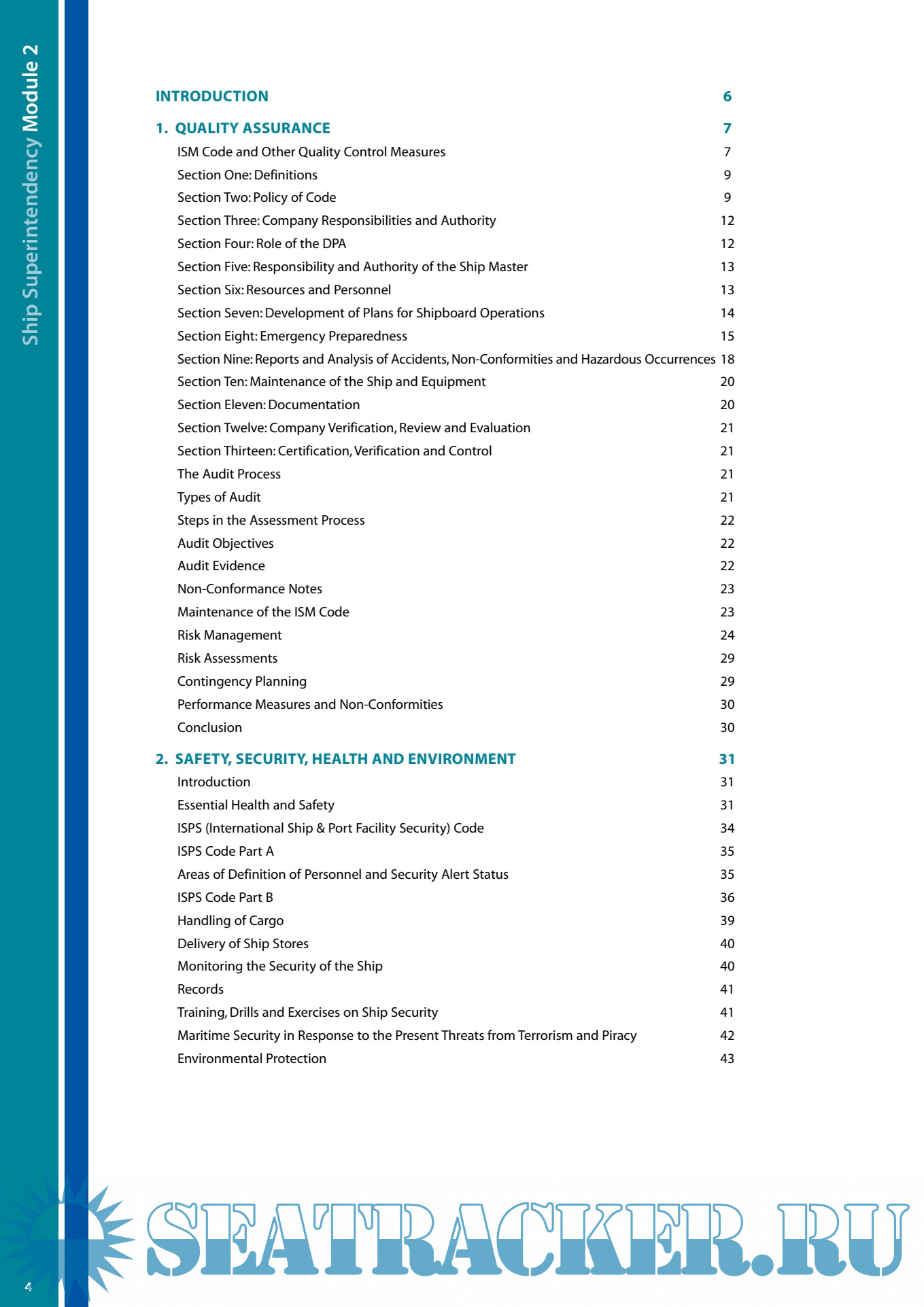 Year: 2011 Language: english Author: Lloyds Matitime Academy Genre: Reference book Format: PDF Quality: OCR without errors Pages count: 60 Description: intrOductiOn In this module you will cover the following areas: Quality assurance • International Safety Management (ISM) and other quality control measures • Performance measures and non-conformities safety, security, Health and environment • Essential Health and Safety • International Ship and Port Facility Security (ISPS) • Environmental protection Port state control • Managing Port State Control inspections • Deficiencies and detentions • Commercial implications of detentions I have to make the assumption that those of you undertaking this course are not necessarily experienced mariners, but are working towards applying for, or already acting as, a superintendent for a shipping or shipping management company. I also have to make the assumption that you will not necessarily have a good grounding in subjects covered in this module. This applies to the theory and also to practical experience in the field. I will give you a basic overview of each of the various sections and provide a more in depth view of the practical aspects of the rules and regulations, thus helping you to understand the reasons behind some of them and the practical interpretation of those regulations. Interpretation differs widely from one government department to another, from one country to another. This is due to cultural, regional and local differences around the world. On completion of this module you should have a good understanding of each area covered and an insight into the practical applications and recent case histories which illustrate the various aspects discussed.