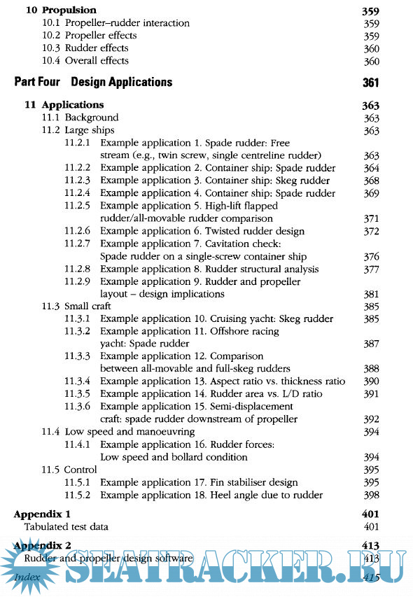 Year: 2007 Language: english Author: Anthony F Molland & Stephen R Turnock Genre: Technical book Publisher: Elsevier Edition: 1st ISBN: 978-0-75-066944-3 Format: PDF Quality: eBook Pages count: 451 Description: Marine control surfaces are all pervasive and are used on a wide range of marine vehicles as rudders, stabilisers and for pitch control. They can range in size from a height of 40cm for a control surface on an autonomous underwater vehicle to a height of 9 m and weighing over 80 tonnes for the redder on a large container ship. An extensive amount of research and investigation into ship rudders and control surfaces has been carried out over a number of years, including wide ranging investigations by the authors into rudder-propeller interaction. The research has generally entailed experimental and theoretical investigations and the main results of many of these investigations have been published as contributions to Journals and at Conferences. It is considered, however, that there is a need to bring together the experimental and theoretical data sources and design methods into a book that will be suitable both for academic reference and as a practical design guide.