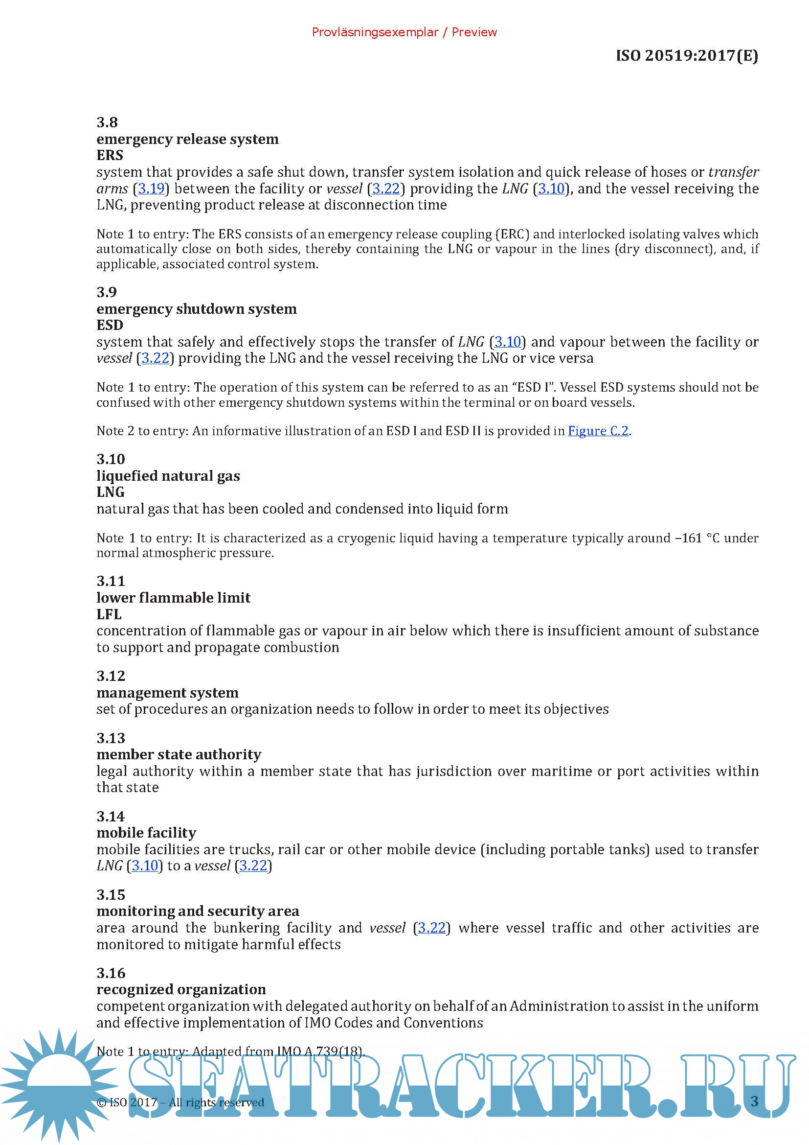 Due to numerous economic and environmental factors, the use of liquefied natural gas (LNG) as a vessel’s fuel has increased. While LNG fuelled ships and vessels have been in service for over 10 years, most of these vessels have operated within small defined areas using LNG bunkering operations designed for that particular vessel service. The increase in LNG fuelled vessels corresponds with an increase in the number of the regions that these vessels will service. Therefore, there is a need to standardize LNG bunkering operations internationally to a reasonable degree so that vessel operators will have the tools to select vessel fuel providers that meet set safety and fuel quality standards and LNG bunkering operations will be conducted safely. This document can be used for both vessels involved in international and domestic service regardless of size.