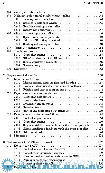 Year: 2006 Language: english Author: Øyvind Smogeli Genre: Research papers Publisher: NTNU Format: PDF Quality: eBook Pages count: 322 Description: This is a thesis about control of marine propellers. All ships and underwater vehicles, as well as an increasing number of offshore exploration and exploitation vessels, are controlled by proper action of their propulsion systems. For safe and cost effective operations, high performance vessel control systems are needed. To achieve this, all parts of the vessel control system, including both plant level and low-level control, must be addressed. However, limited attention has earlier been given to the effects of the propulsion system dynamics. The possible consequences of improper thruster control are: • Decreased closed-loop vessel performance due to inaccurate thrust production • Increased vessel down-time and maintenance cost due to unnecessary mechanical wear and tear. • Increased fuel consumption and risk of blackouts due to unpredictable power consumption. By focusing explicitly on the propeller operating conditions and the available options for low-level thruster control, this thesis presents several results to remedy these problems.