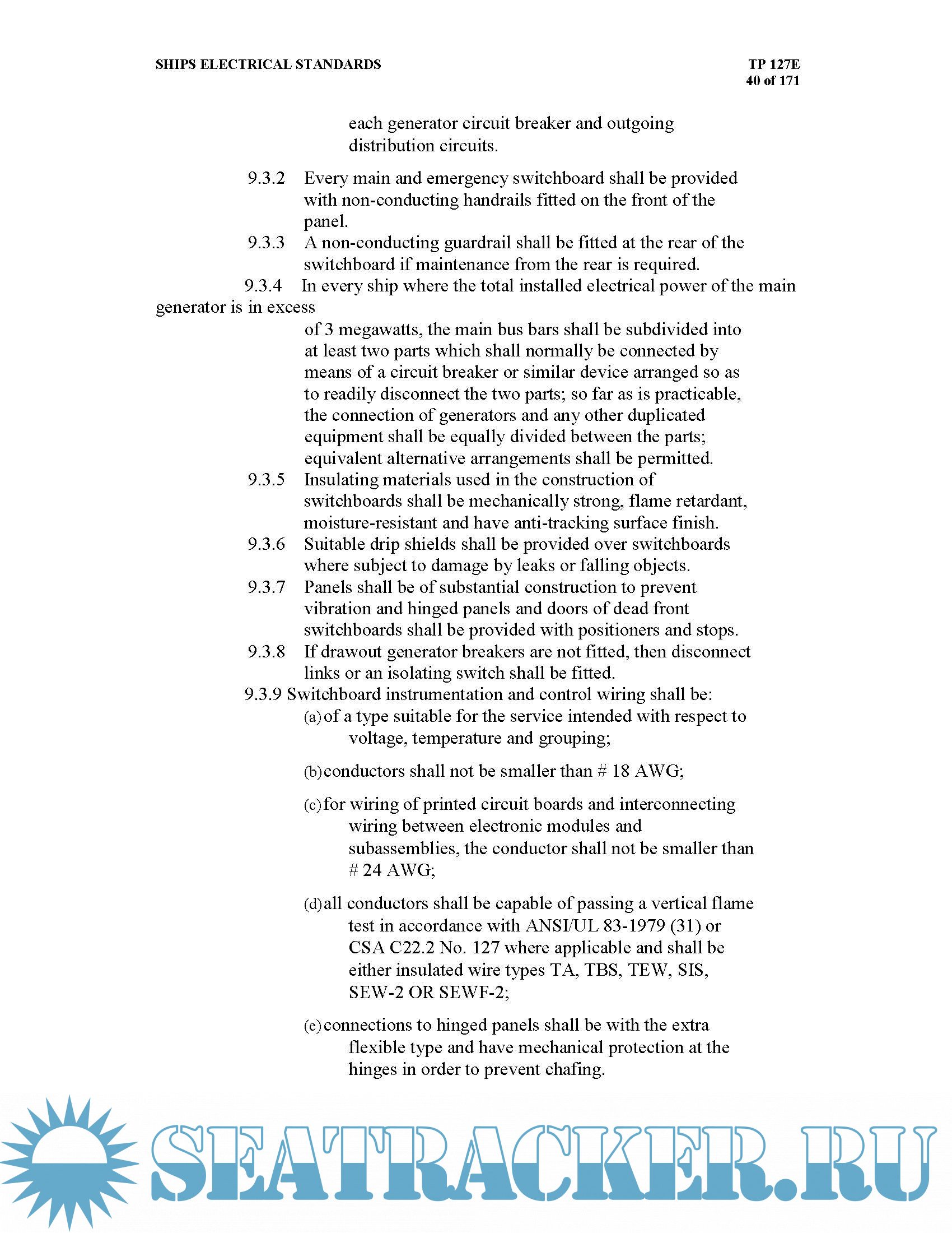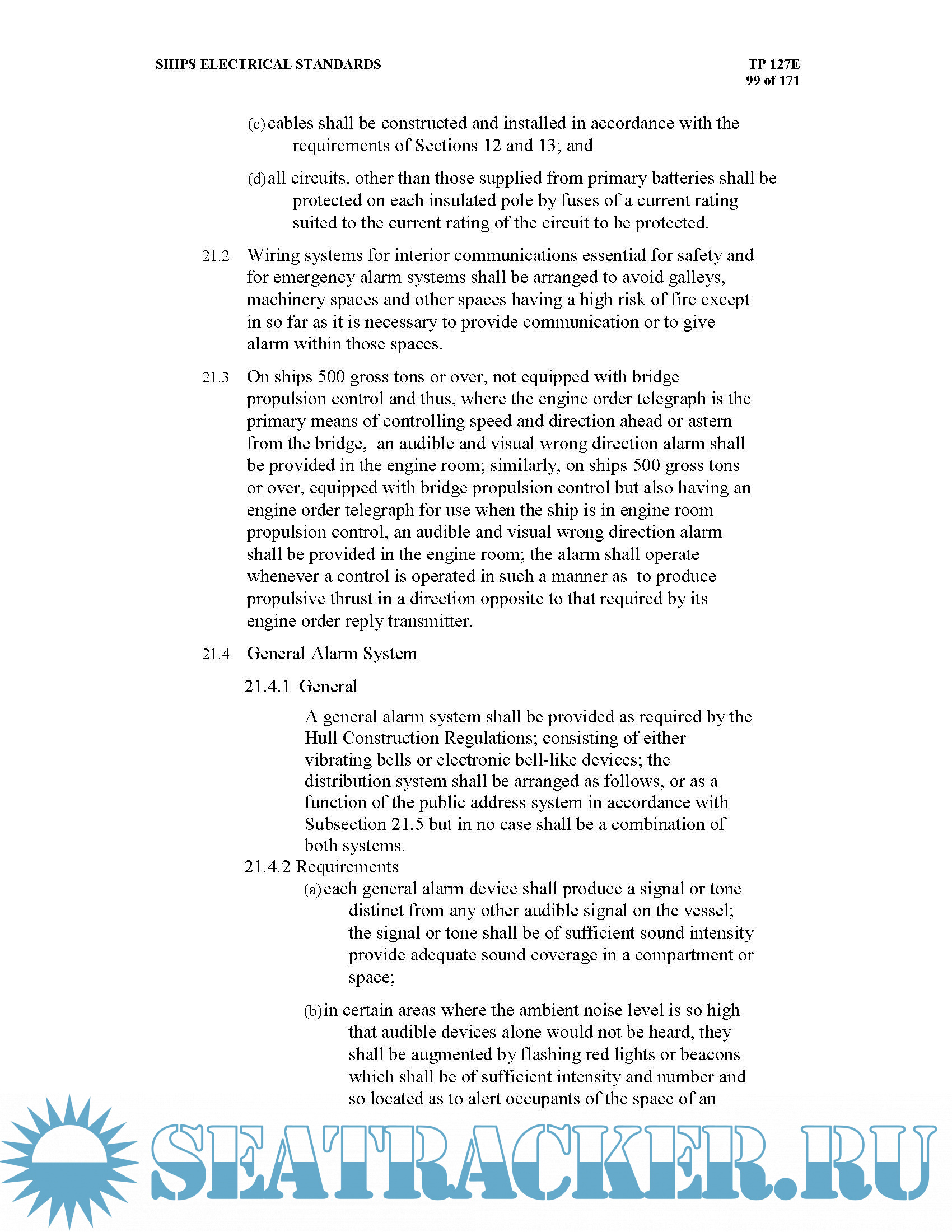 Year: 2018 Language: english Author: Transport Canada Format: PDF Quality: eBook Pages count: 171 Description: Amendments made to this Standard TP 127 shall apply only to the following: (a) new vessel construction; or (b) vessels coming into Canadian Registry; or (c) where at the time substantial reconstruction or modifications to installations, equipment or appliances is carried out on an existing installation. The implementation date of these amendments shall be the date issued indicated on the cover page of the Ship Electrical Standards