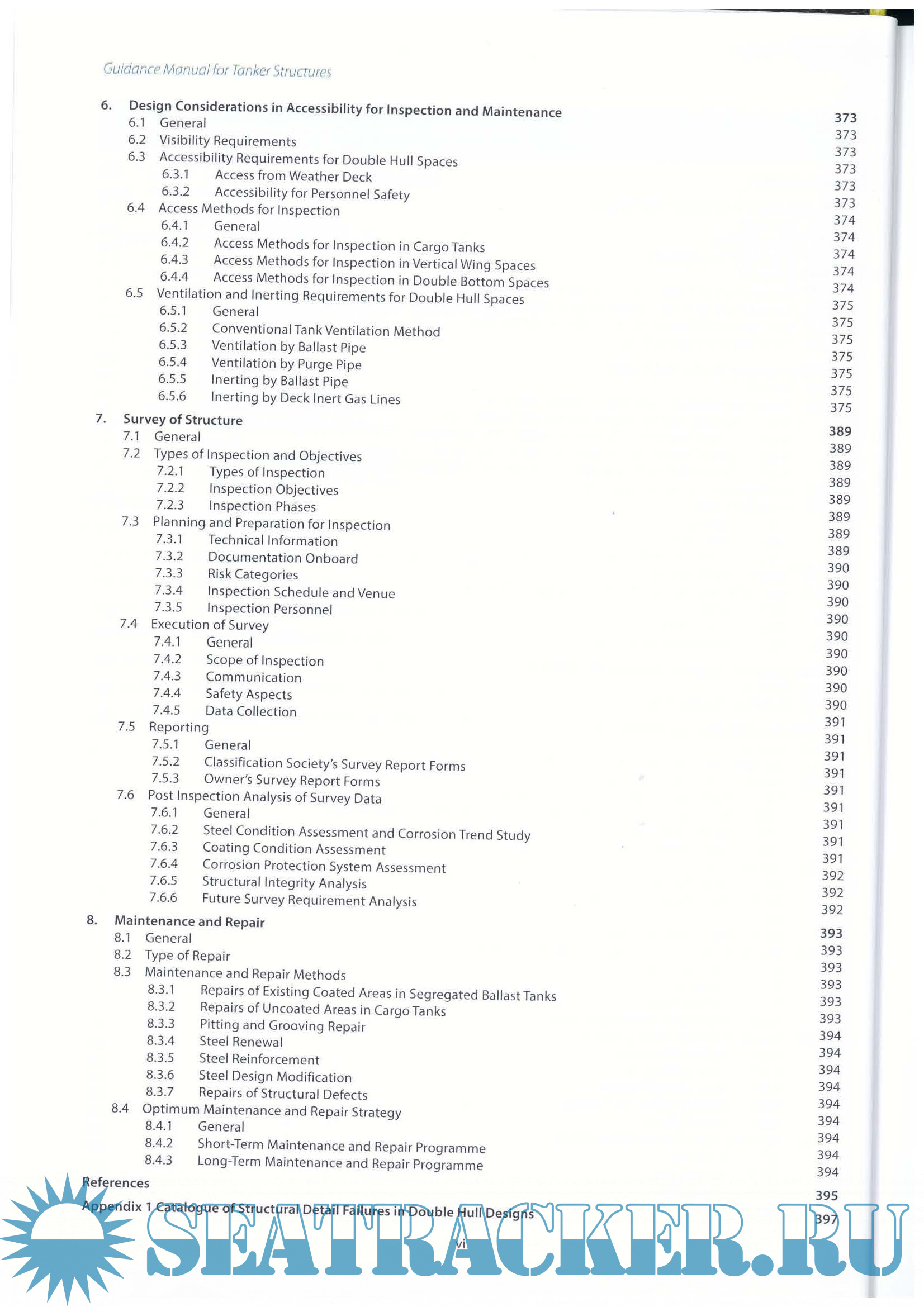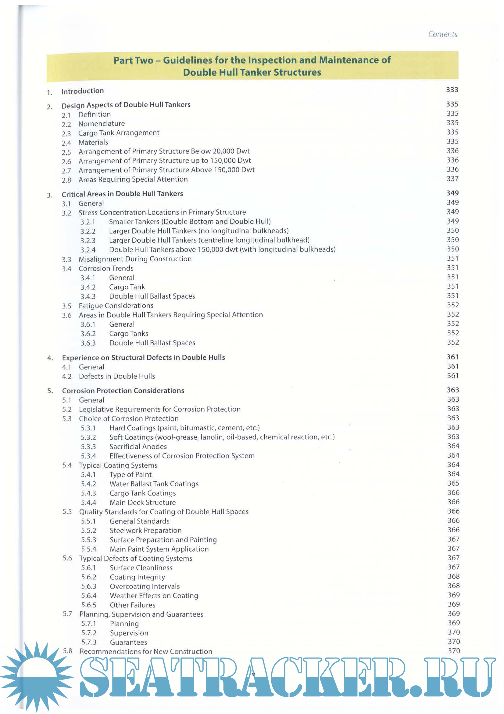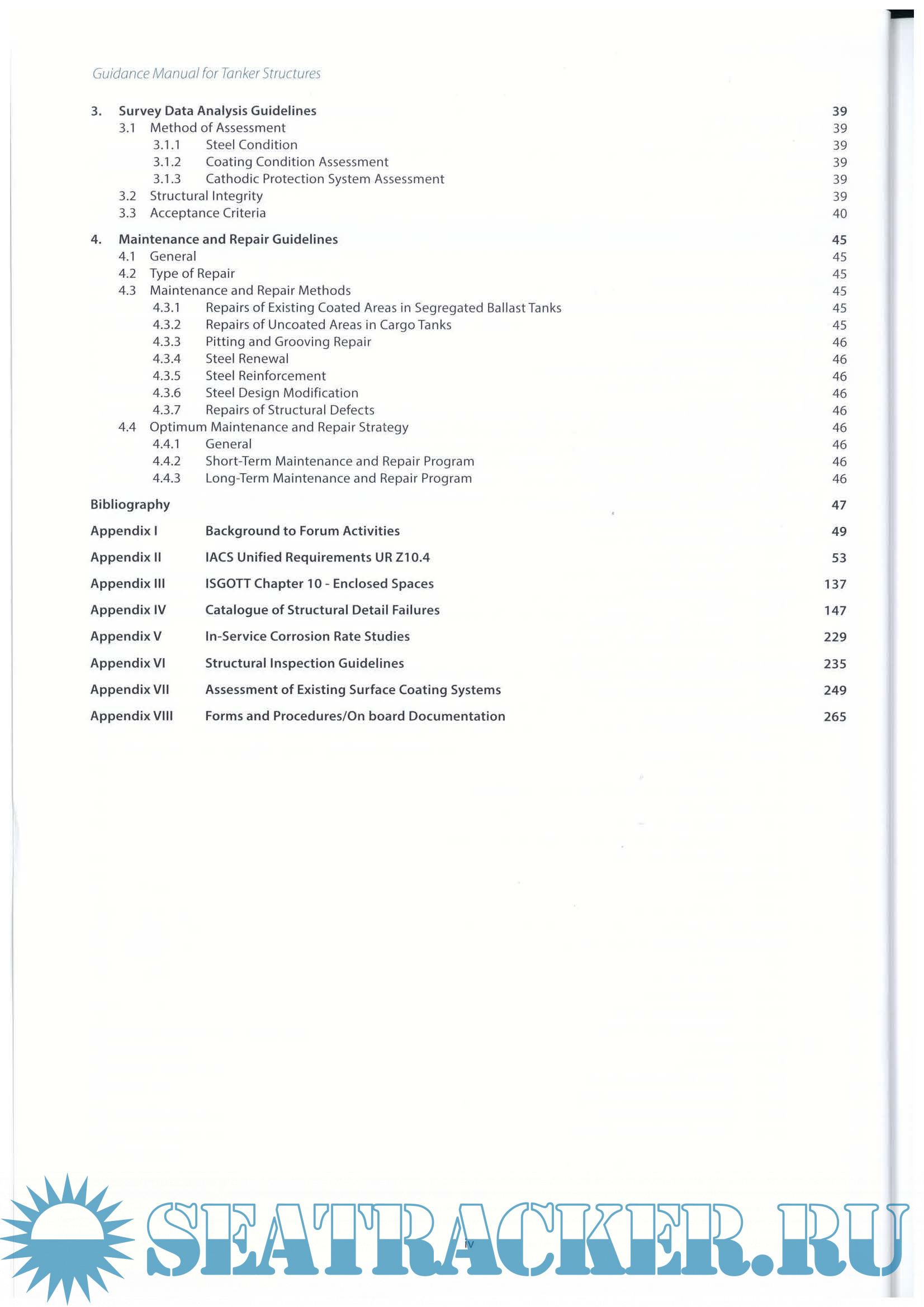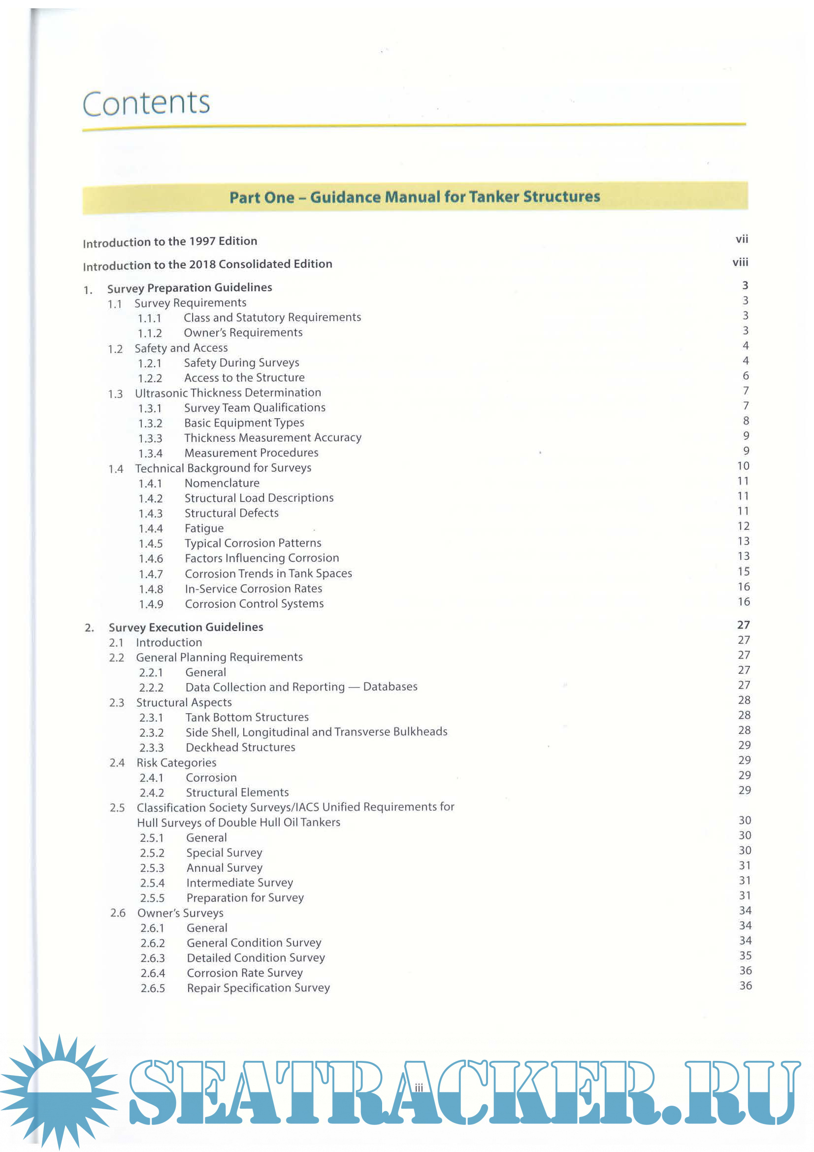 Year: 2018 Language: english Author: Tanker Stracture Co-operative Forum Genre: Guide Publisher: Witherby Edition: 2018 ISBN: 978-1-85609-751-2 Format: PDF Quality: Scanned pages Pages count: 453 Description: This collates the information required for the assessment of ballast and cargo tank structures. Based on the experience and practices used by members of the Tanker Structure Co-operation Forum, it covers survey preparation and execution guidelines, maintenance guidelines and survey data analysis. This edition also incorporates IACS Unified Requirement, UR Z Survey and Certification, IACS UR Z10.4 'Hull Surveys of Double Hull Oil Tankers' which entered into force on 1st January 2018.
