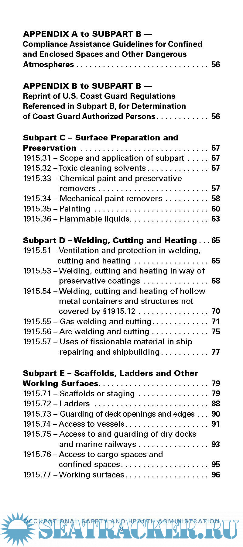 Description: This booklet contains all the safety and health standards specific to the Shipyard Industry contained in Title 29 Code of Federal Regulations (CFR) Part 1915, as of July 1, 2014. Also included are brief discussions of the following: