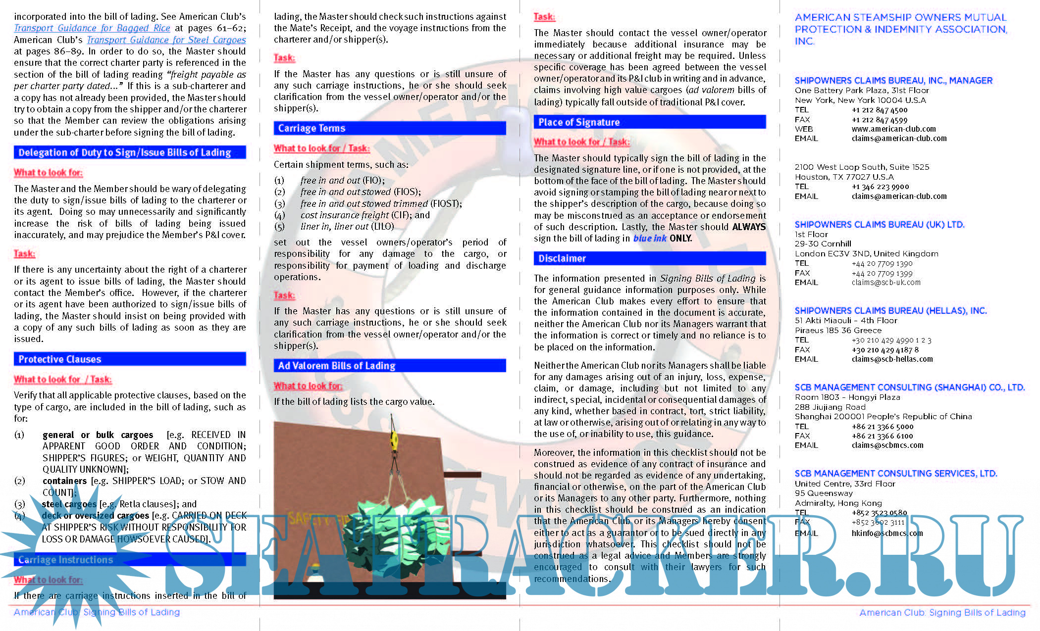 Description: This download contains the 2 pages pocket guide of the American P & I Club regarding signing the Bills of Ladings