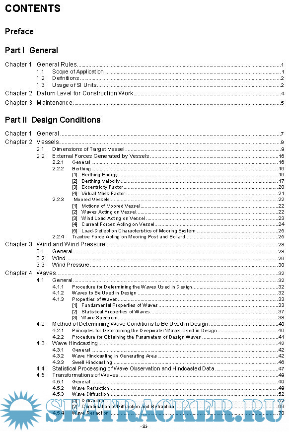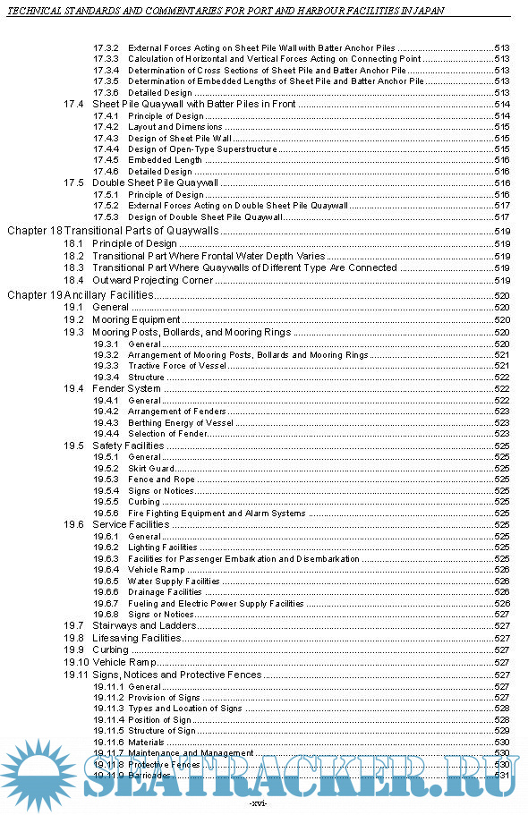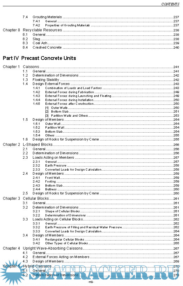 Year: 2002 Language: english Author: The Overseas Coastal Area Development Institute of Japan Genre: Technical book Format: PDF Quality: eBook Pages count: 664 Description: This book is a translation of the major portion of the Technical Standards and Commentaries of Port and Harbour Facilities in Japan (1999 edition) published by the Japan Port and Harbour Association, stipulated by the Ordinance of the Minister of Transport, which was issued in April 1999. The translation covers about two thirds of the Japanese edition.