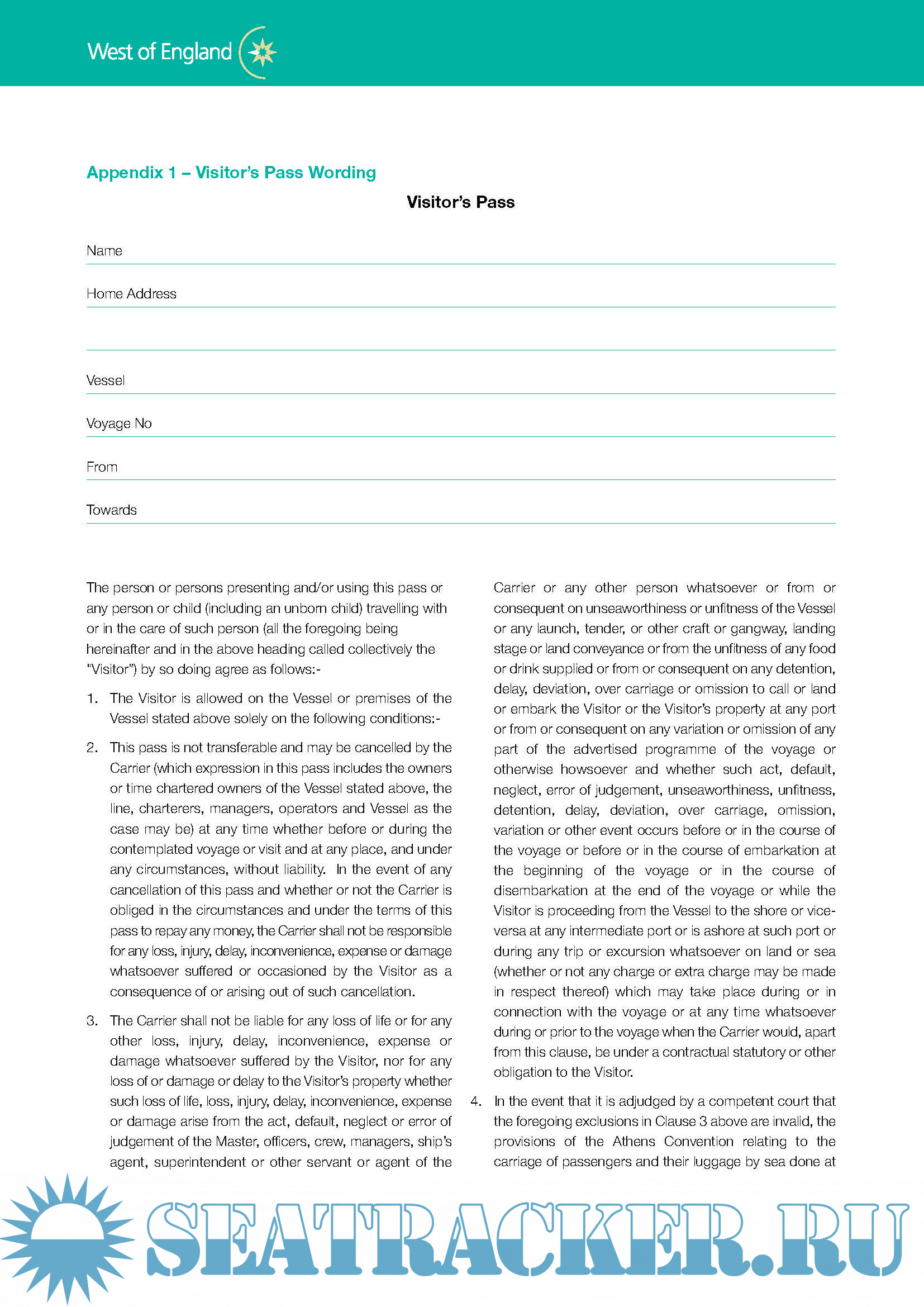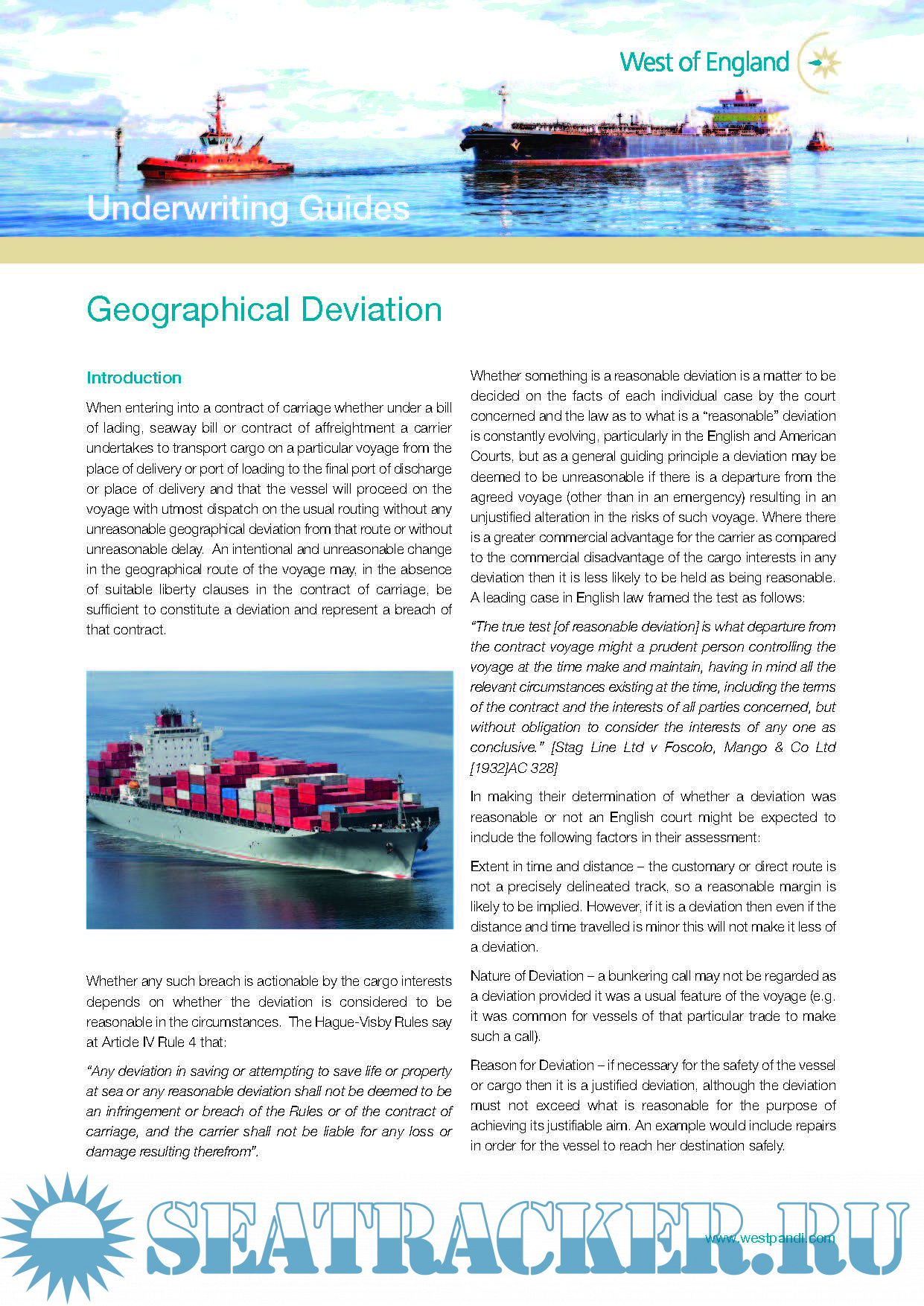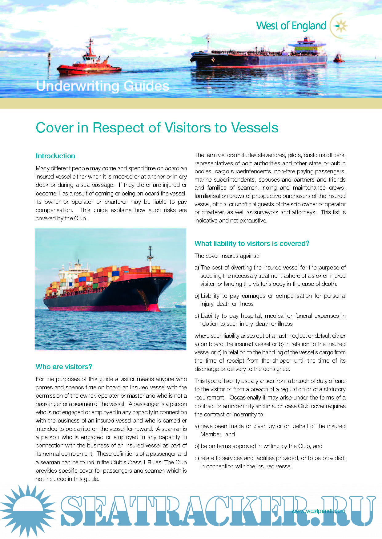 Description: Underwriting Guides of West of England P&I Club regarding Geographical Deviation and Cover in Respect of Visitors to Vessels.