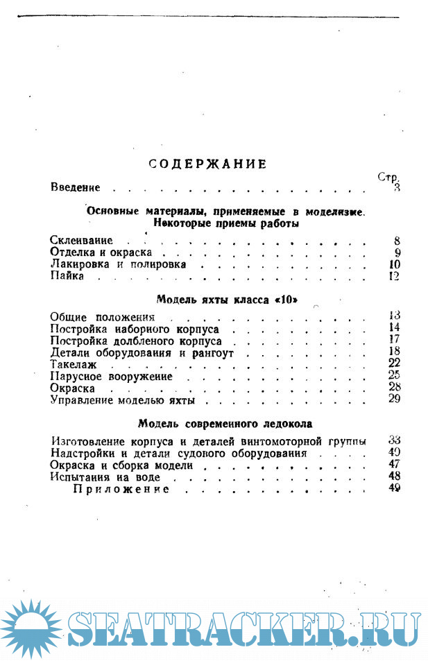Описание: В брошюре описана постройка моделей яхты класса "10" и современного ледокола, указаны материалы и некоторые приемы работы, дана рецептура шпаклевок, клеев, приведены некоторые рекомендации и советы по конструктивному оформлению и технологии изготовления корпусов, рангоута и деталей судового оборудования.