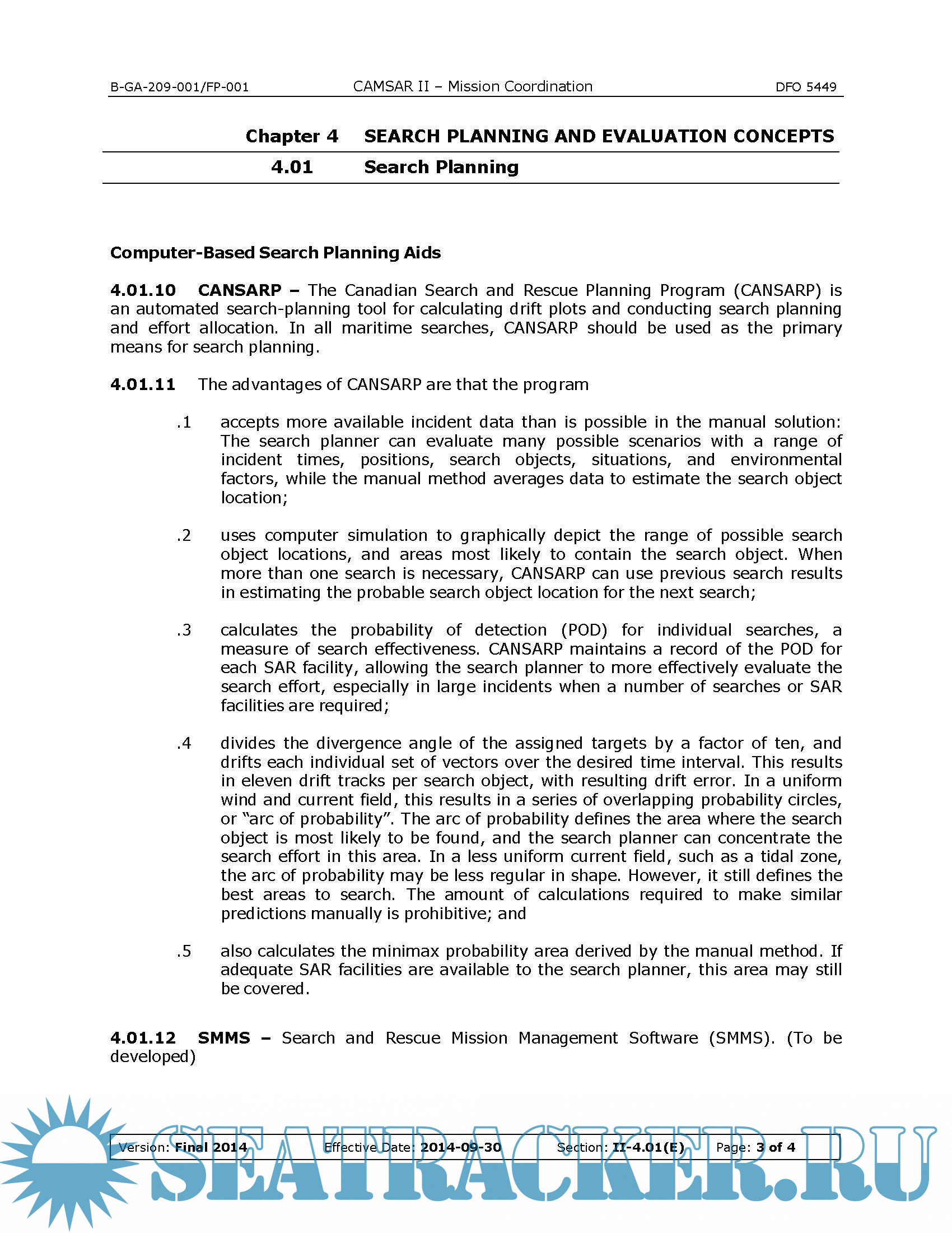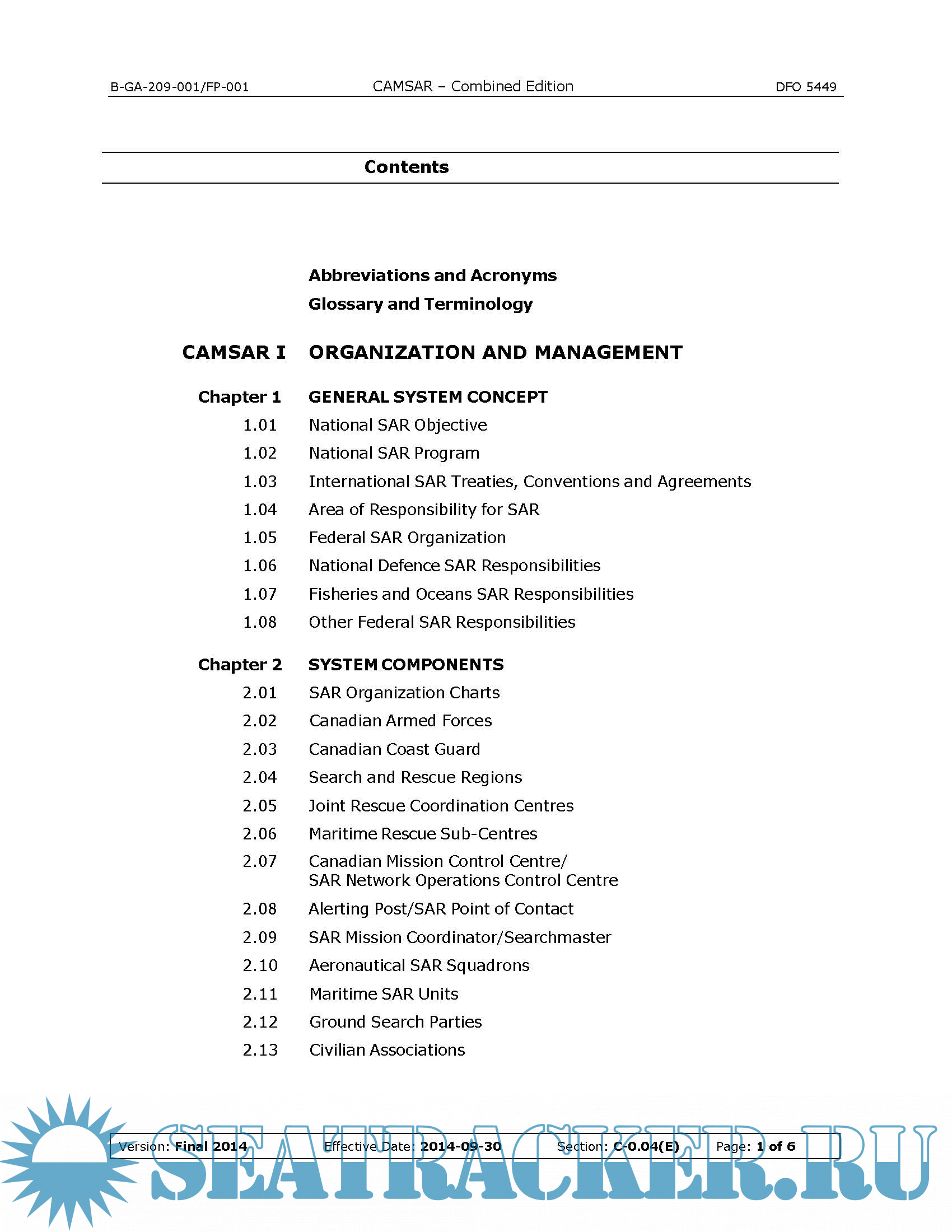 Year: 2014 Language: english Author: Canadian Coast Guard Genre: Manual Format: PDF Quality: eBook Pages count: 522 Description: The purpose of the Canadian Aeronautical and Maritime Search and Rescue (CAMSAR) Manual is to supplement the International Aeronautical and Maritime Search and Rescue (IAMSAR) Manual by providing national guidelines and standard operating procedures (SOPs) specific to the Canadian Federal Aeronautical and Maritime Search and Rescue (SAR) System. In turn, the CAMSAR Manual is meant to be augmented by regional and local SOPs. There are three volumes to the CAMSAR Manual: • Volume I – Organization and Management, called CAMSAR I, for short, and is intended to be used in conjunction with the other two CAMSAR volumes and the IAMSAR Manual, Volume I; • Volume II – Mission Coordination, called CAMSAR II, and is intended to be used in conjunction with the other two CAMSAR volumes and the IAMSAR Manual, Volume II; and • Volume III – Mobile Facilities, called CAMSAR III, and is intended to be used in conjunction with the other two CAMSAR volumes and the IAMSAR Manual, Volume III. Vol III is for Mobile Facilities (Vessels and Aircraft) For ease of reference, each of the CAMSAR volumes bears the same title as the corresponding IAMSAR Manual volume, and is also divided into corresponding chapters. The three volumes of the CAMSAR Manual supersede all previous versions