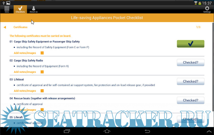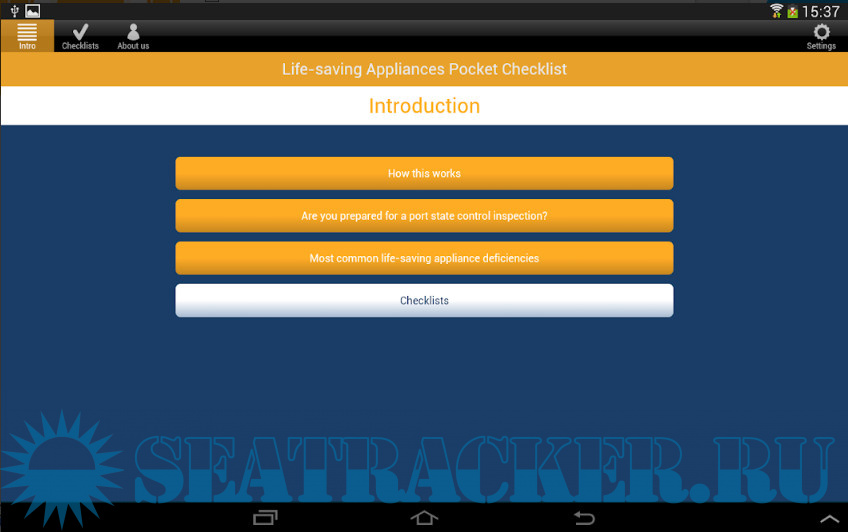 Year: 2017 Version: 3.1.0 Developer: Lloyd's Register Group Services Limited Platform: Android System Requirements: Android 4.0+ Localization: english Crack: Not needed Description: Are the Life-Saving Appliances on board and up to date? Is the firefighting equipment in good working order and fit for purpose? Have I got the appropriate measures in place to prevent marine pollution? Are the appropriate crew agreements in place? Just a few issues that have to be considered prior and during the operation of a yacht. The activities in the yacht industry is moving towards its peak, particularly in the Mediterranean. Owners and guests will be exposed to an unforgettable experience, visiting unique destinations in absolute luxury. This must not be interrupted by preventable miscalculations or inadequate preparedness. One of the foundations of a successful experience is the safety and quality of the yacht and its crew. Disregarding this vital aspect in favour of the entertainment could lead to delays, detentions in case of port state control (PSC) inspections or even worse, accidents. In an effort to assist the industry, LR and the UK P&I Club have released a Life-Saving Appliances pocket checklist app to help ensure that ship personnel are trained in how to inspect, maintain and operate life-saving equipment, and that equipment is ready for use at all times. The app also includes a list of common deficiencies to help ensure compliance with regulatory requirements and help reduce the risk of PSC detentions.