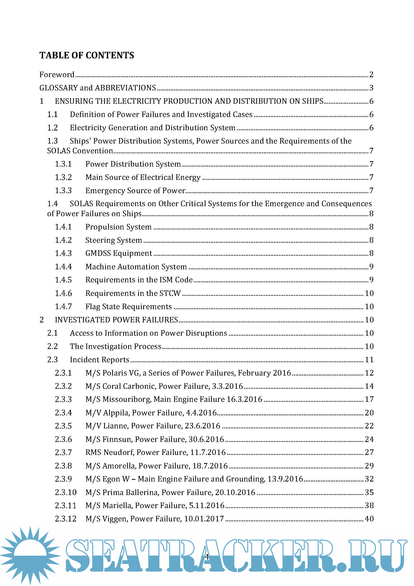 Power Failures on Ships, Safety study