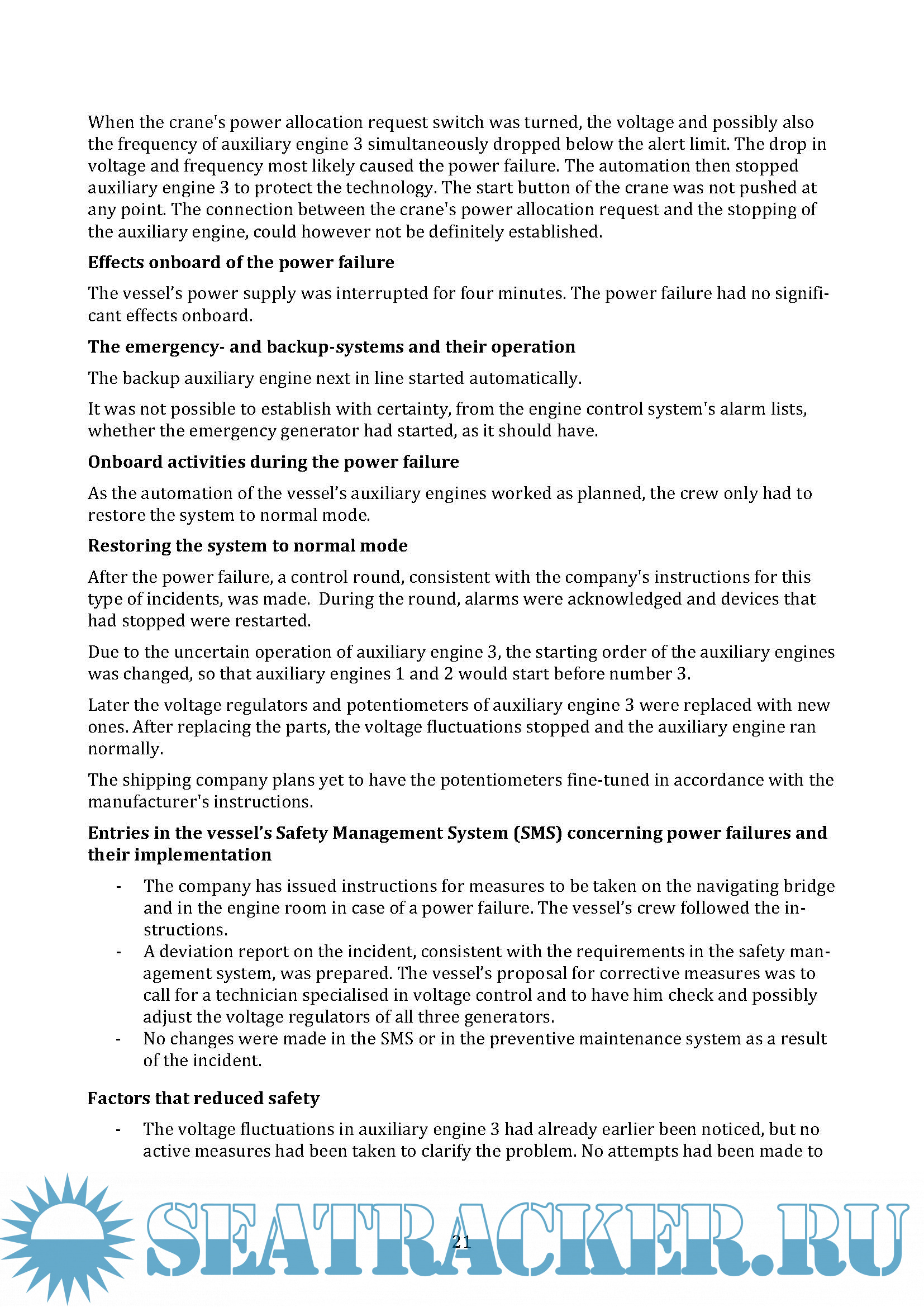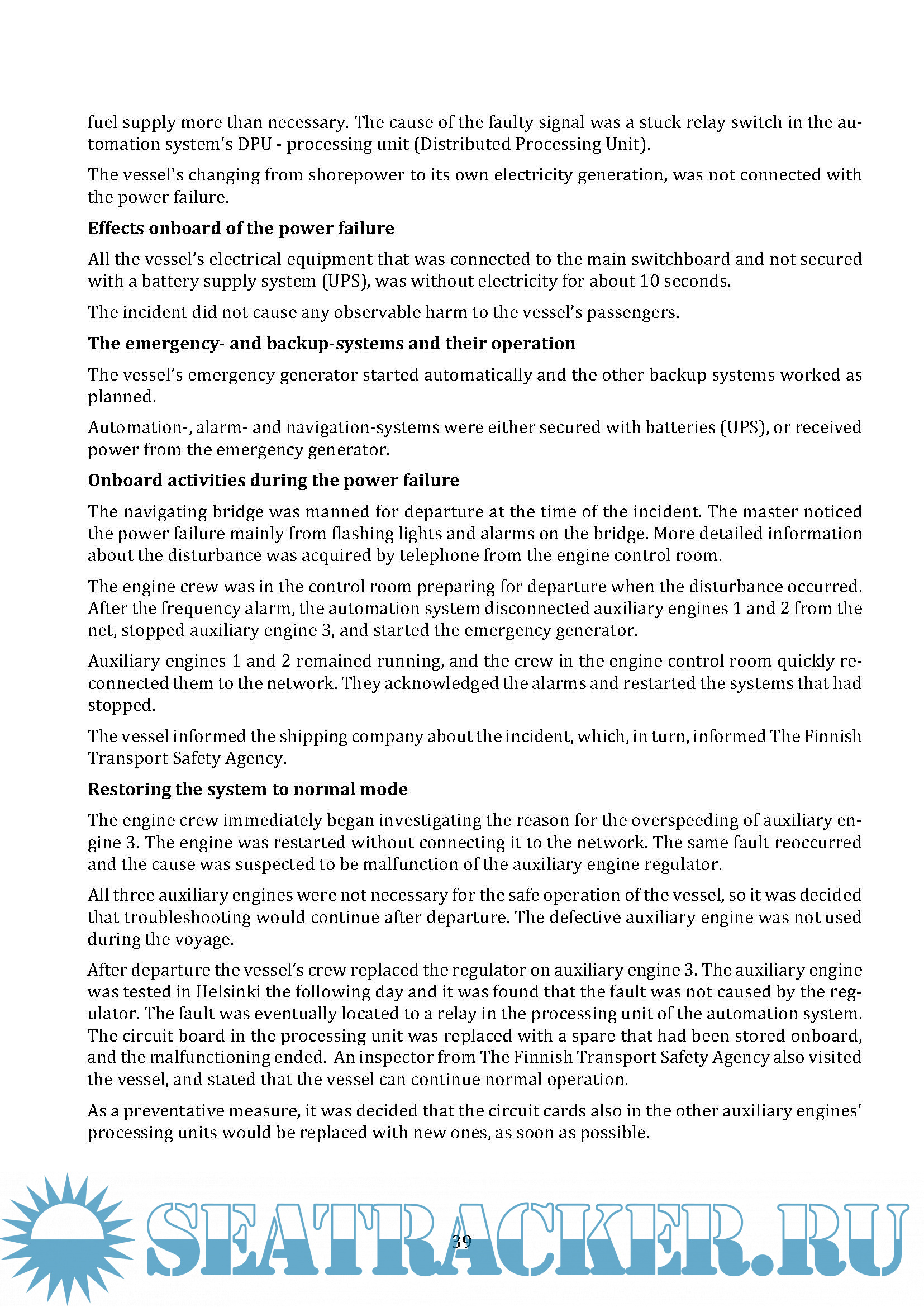 power failures on ships and presents acts and regulations concerning power failures on ships.