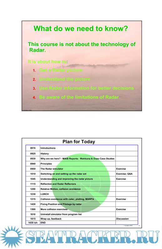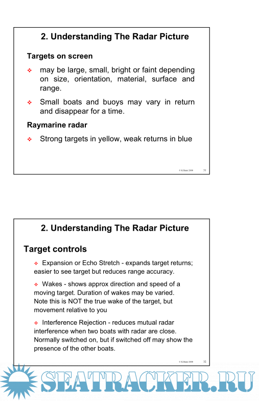 63 pages of presentations that can be read on their own, in front of a Radar screen or alongside the RYA Radar course bookScreenshots