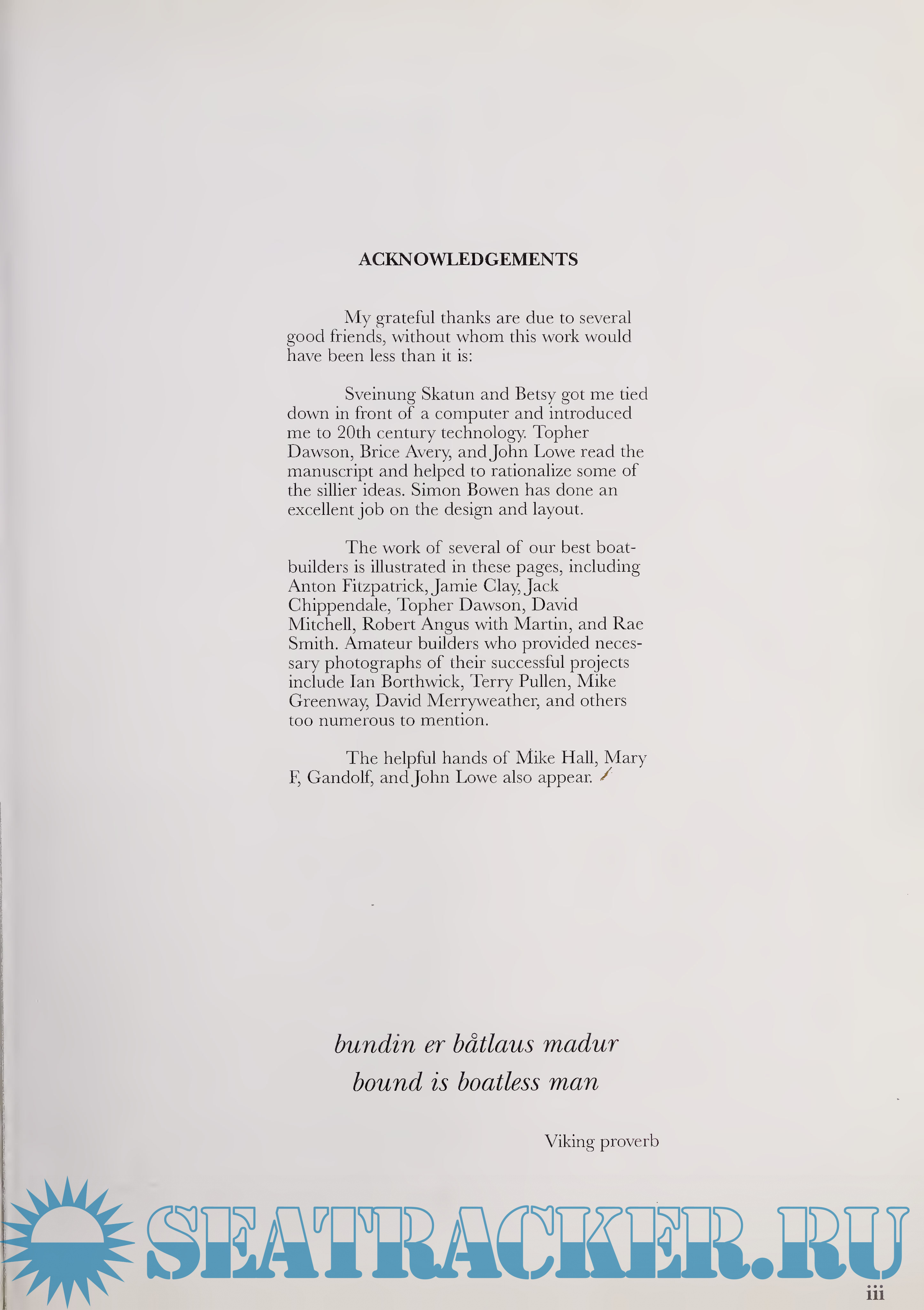 Iain Oughtred is the well-known designer of elegant glued-lapstrake plywood boats, including the Acorn Skiffs, Gray Seal, Caledonia Yawl, Whilly Boat, and more. We have been offering his detailed boatbuilding plans for years, so the book was a natural fit. And, you may have noticed many of his designs in Wooden Boat magazine's Launchings column. With the book in hand and a set of his plans, you can hardly go wrong.